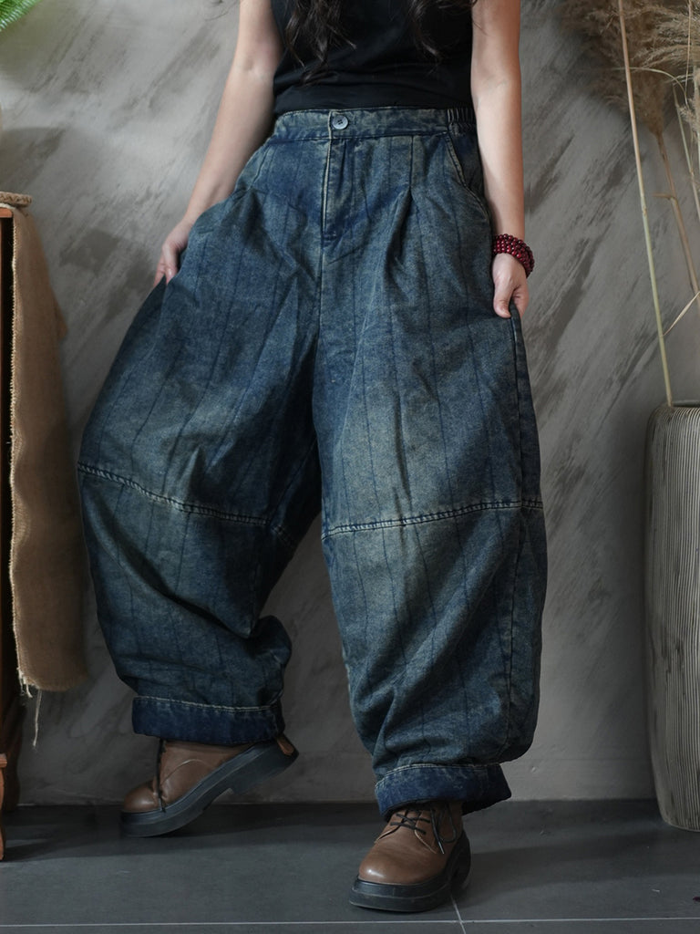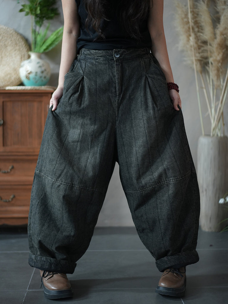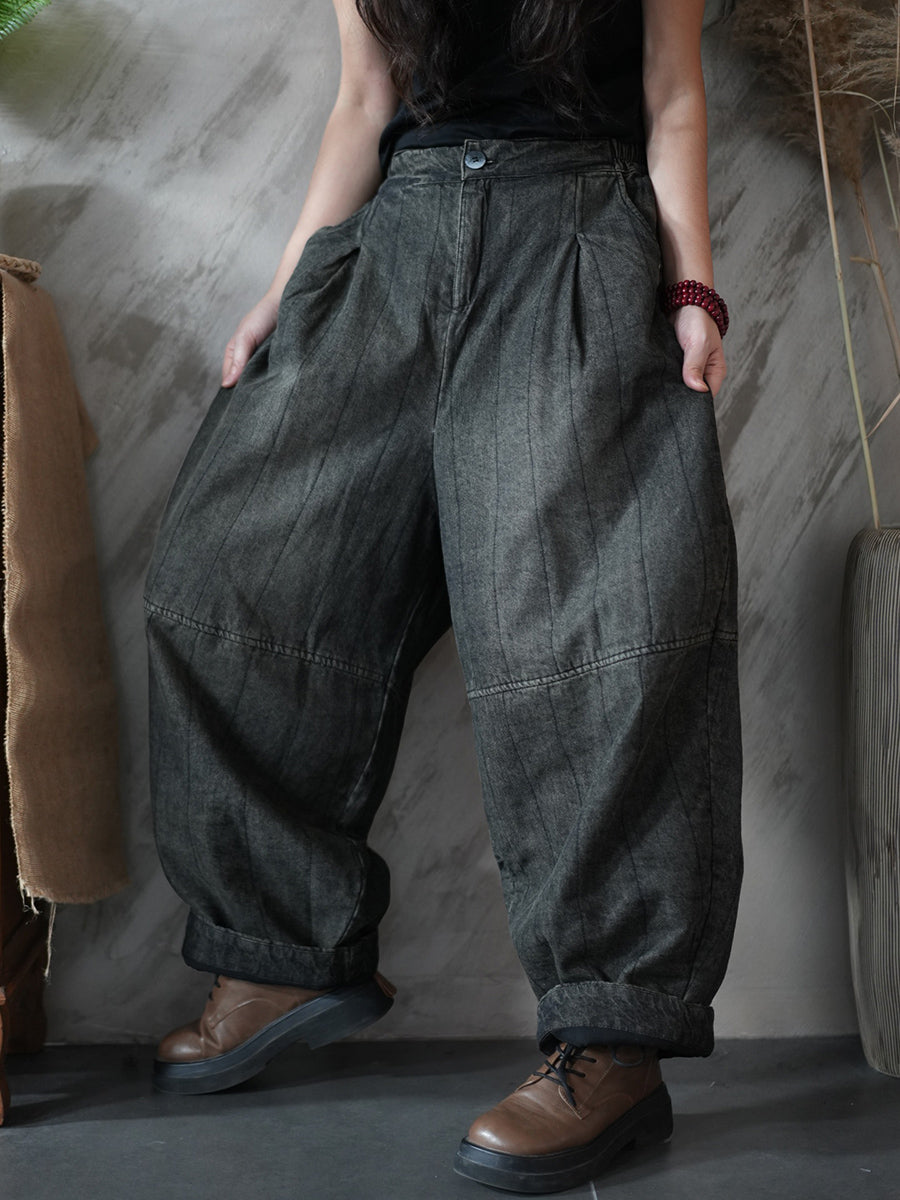 Women Winter Retro Pure Color Padded Harem Pants
