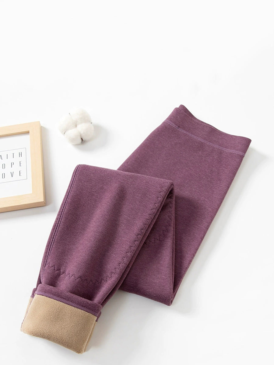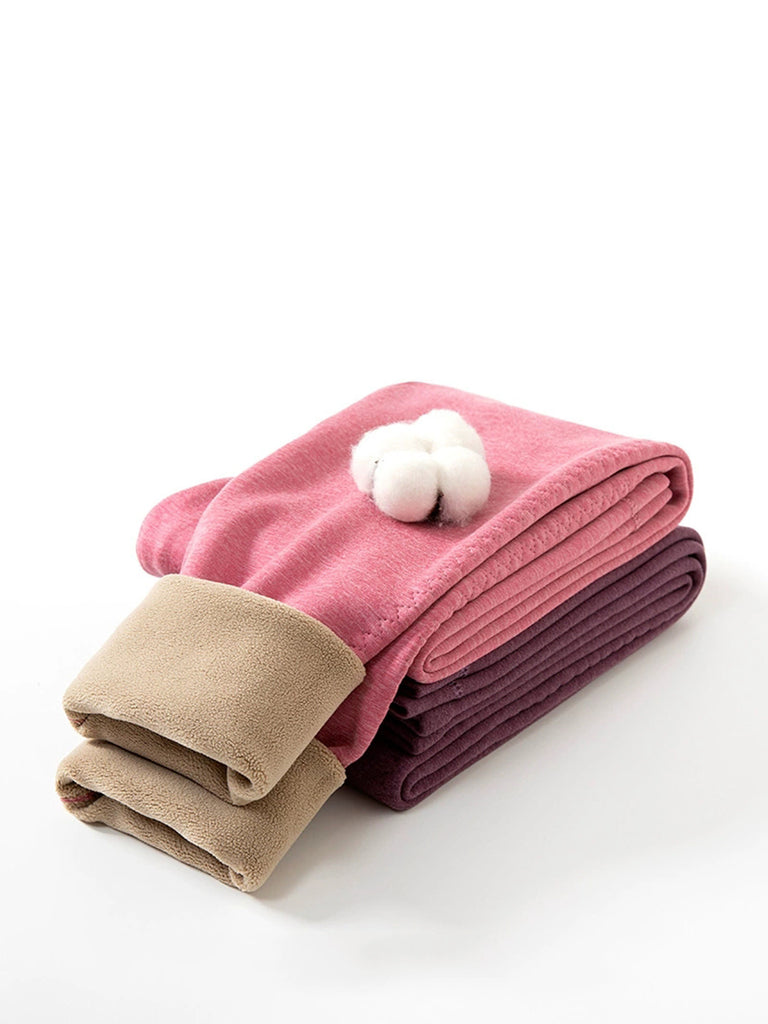 Women Winter Warm Pure Color Fleece-lined Leggings