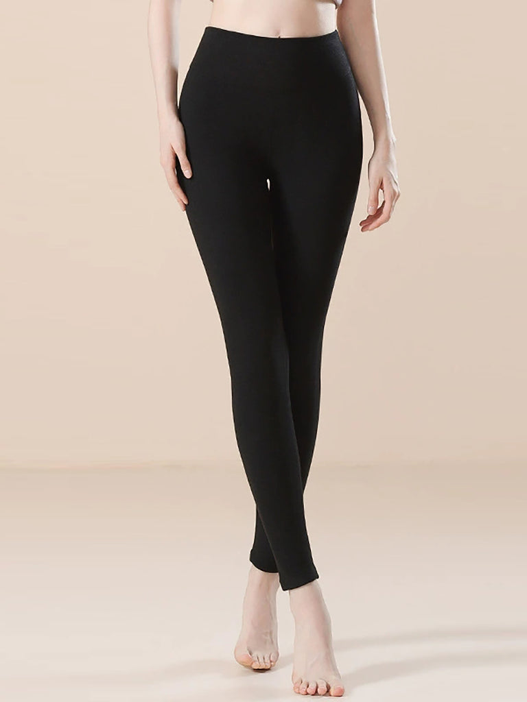 Women Winter Warm Pure Color Fleece-lined Leggings