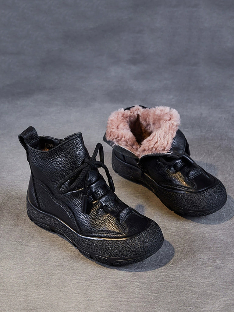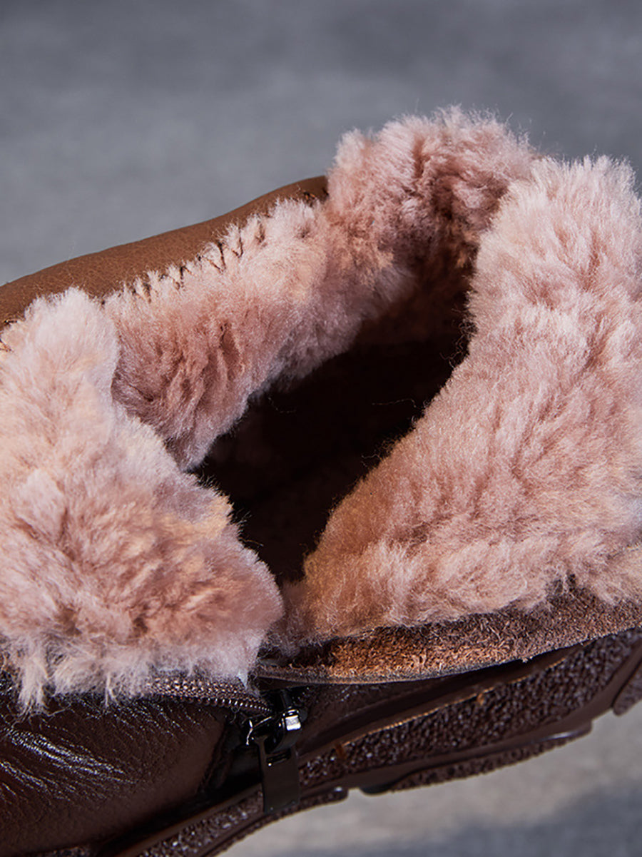 Women Winter Genuine Leather Fleece-lined Boots