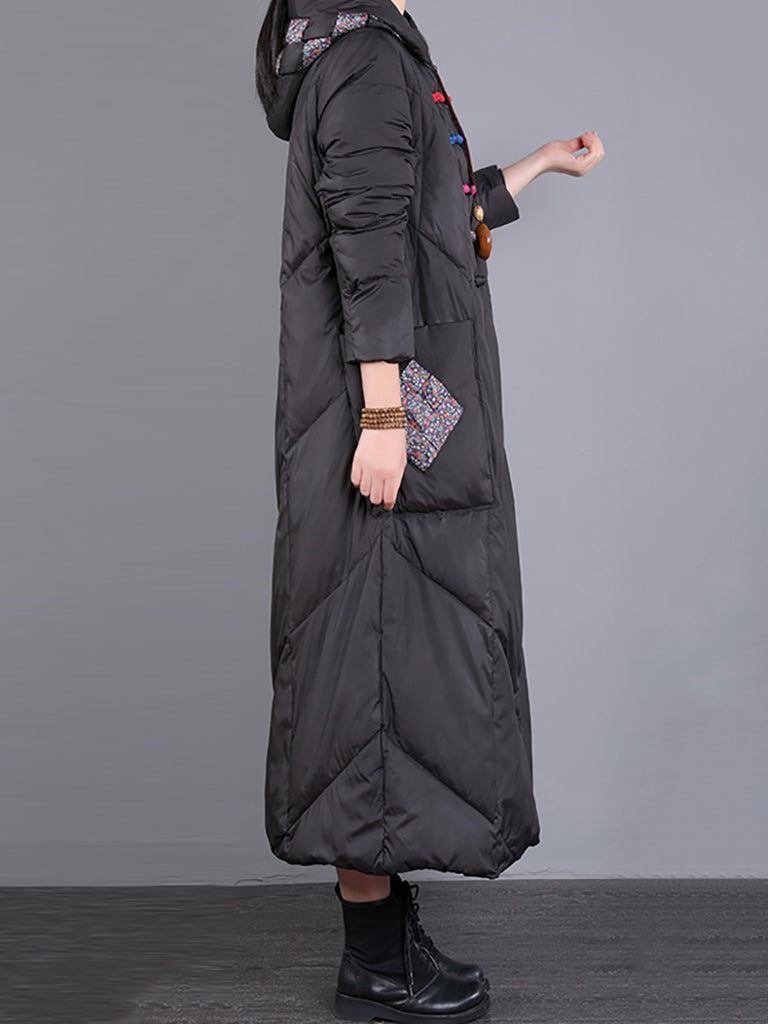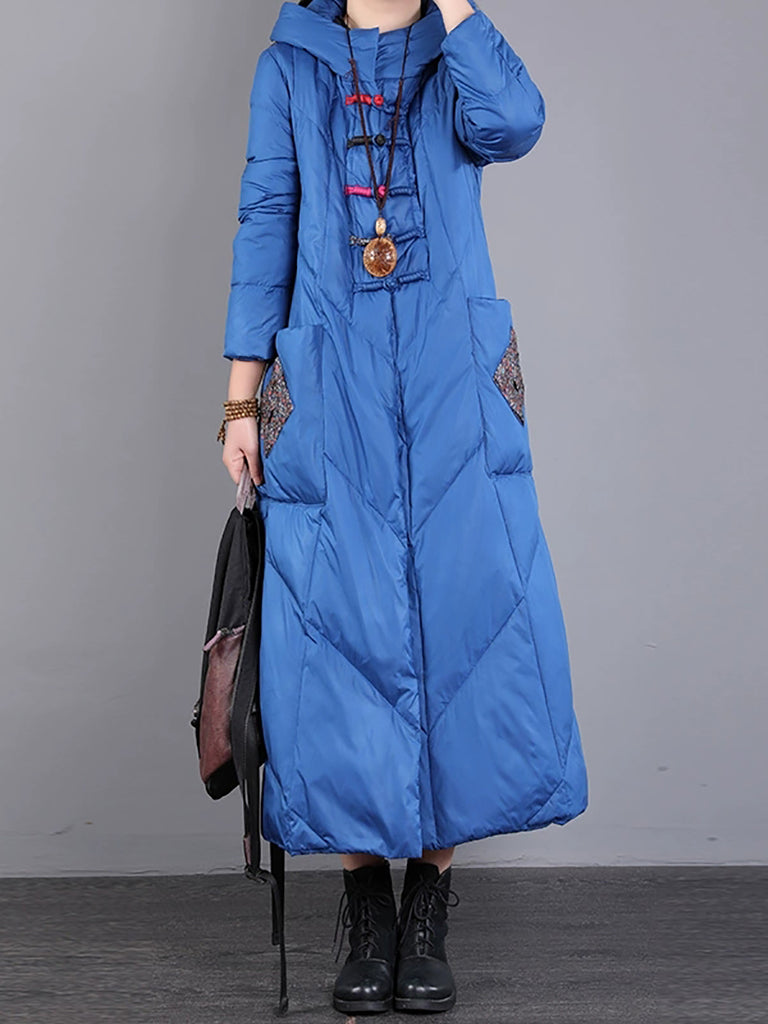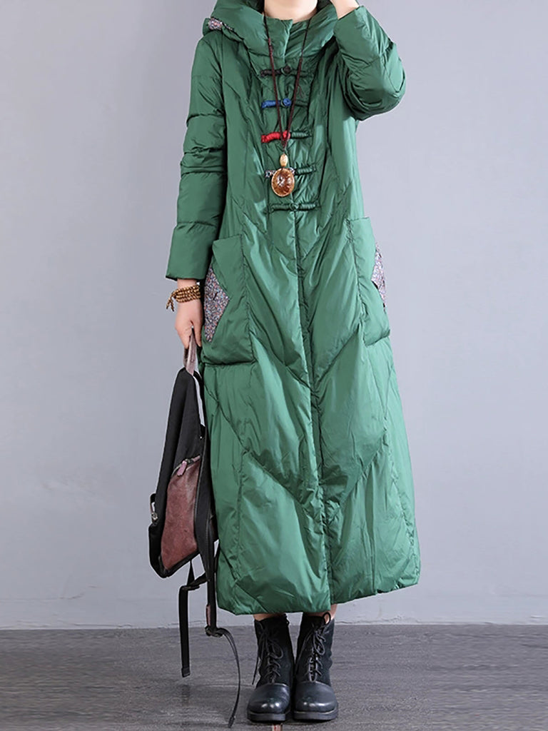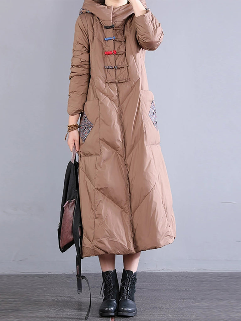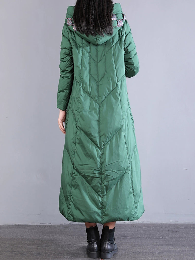 Crafted from pure cotton, this winter coat combines timeless retro aesthetics with contemporary comfort. The hooded collar provides practical protection against cold weather, while intricate embroidery detailing elevates the design with sophisticated visual interest. Full-length regular sleeves offer classic coverage, making it an ideal layering piece for autumn and winter seasons. The structured silhouette reflects vintage-inspired tailoring that transcends seasonal trends.