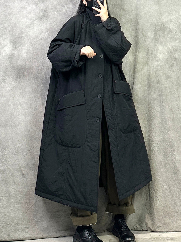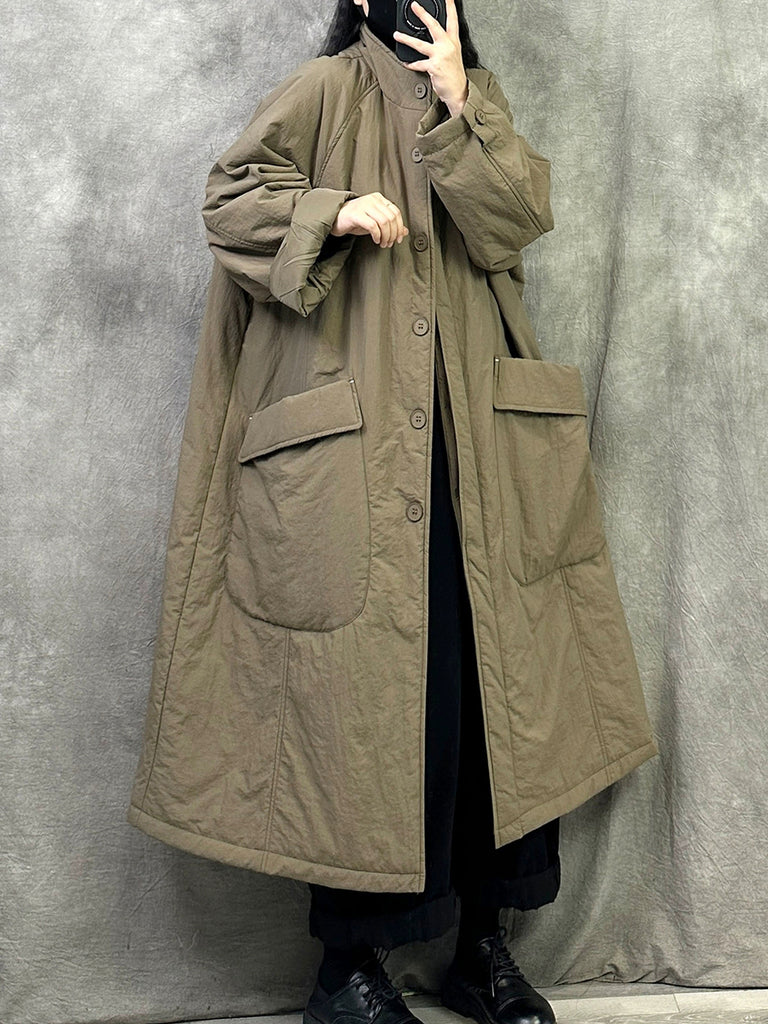 Women Winter Casual Pure Color Stand Collar Long Coat