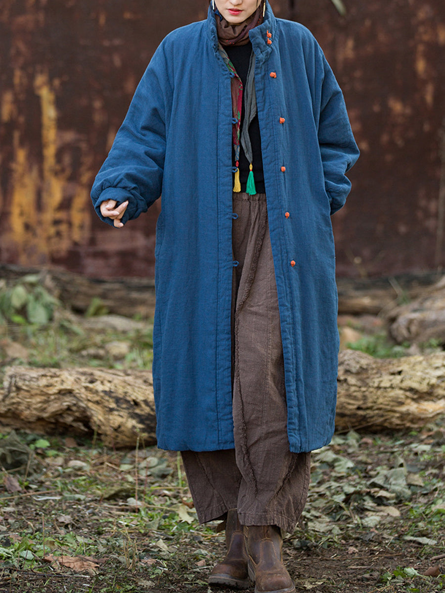 Women Winter Pure Color Stand Collar Padded Overcoat