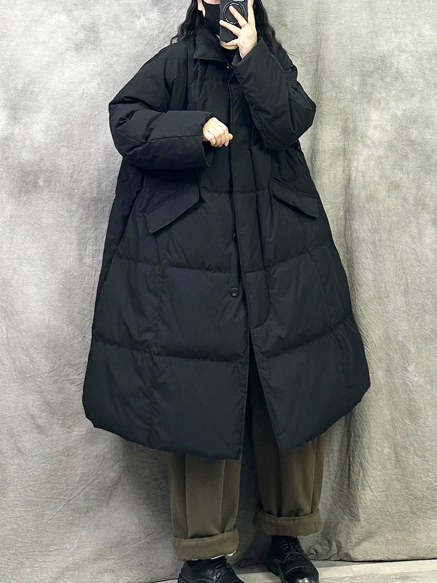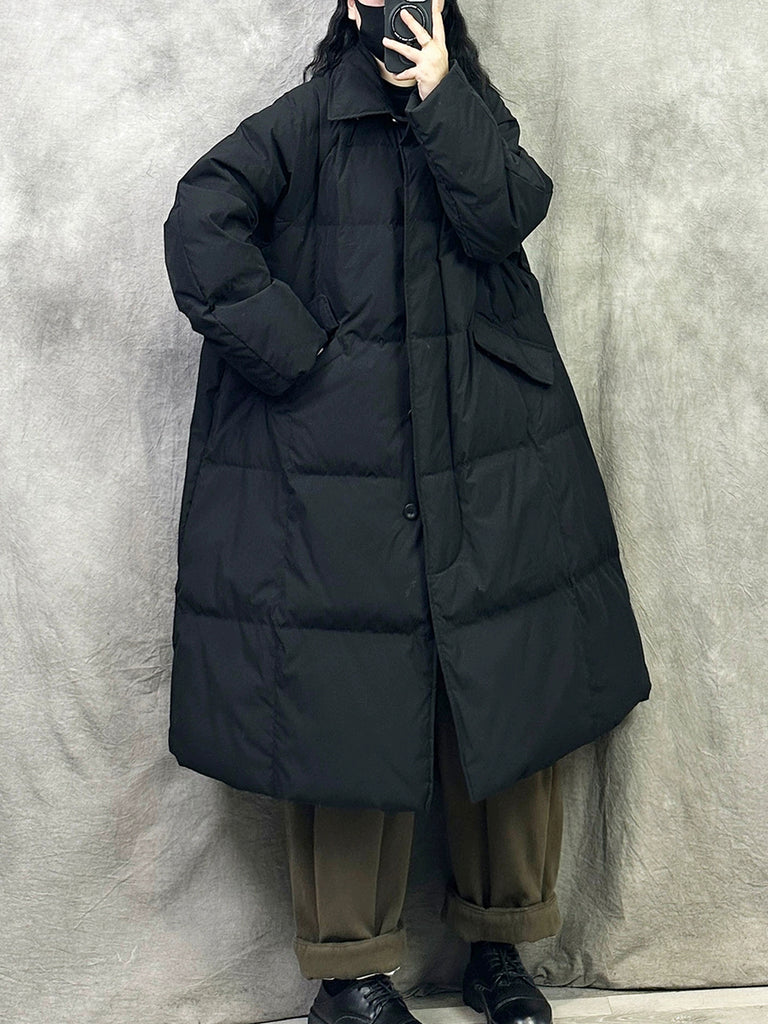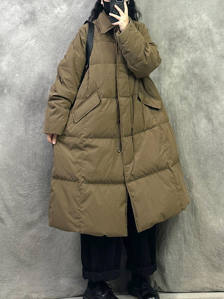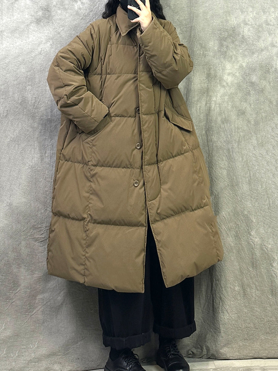 Women Winter Pure Color Turn-down Collar Down Overcoat