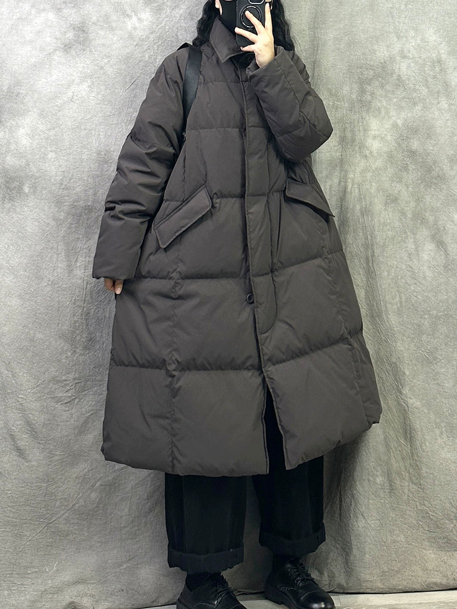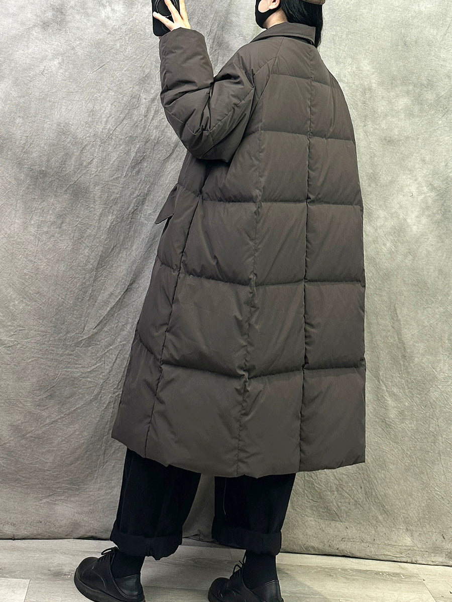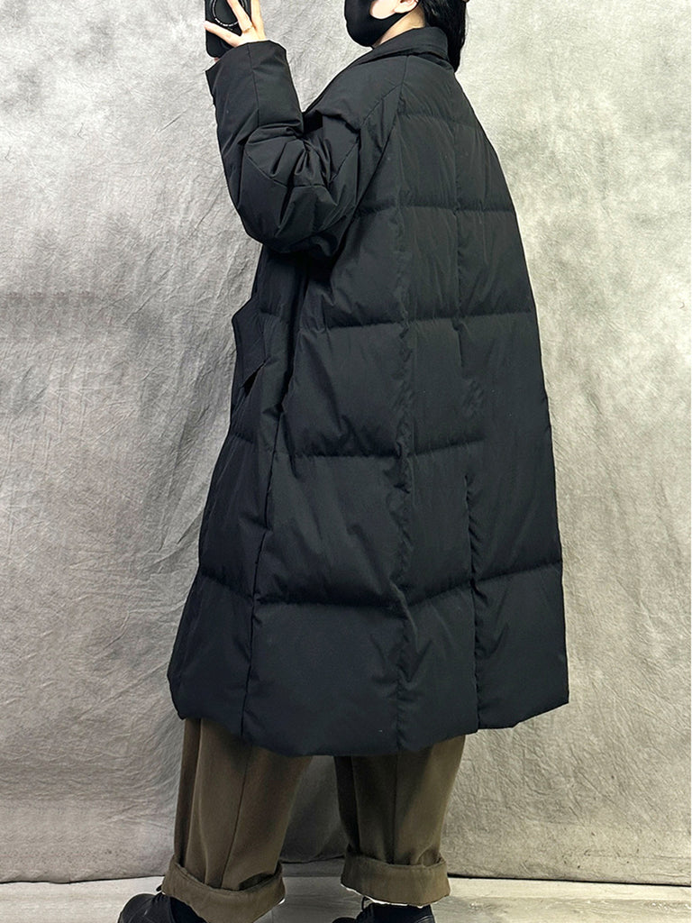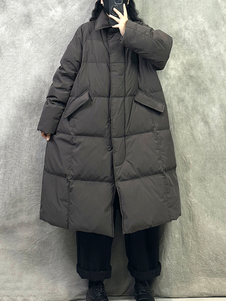 Women Winter Pure Color Turn-down Collar Down Overcoat