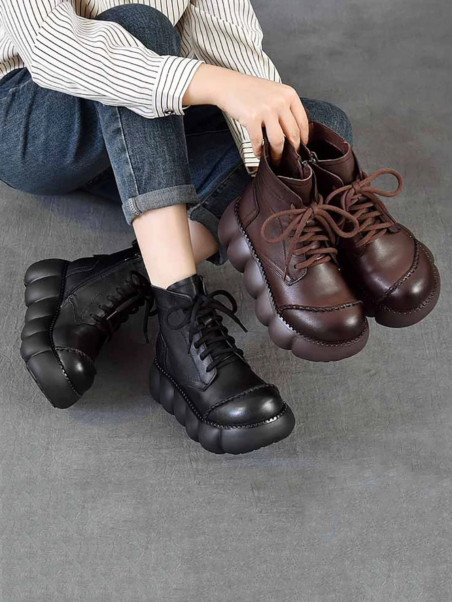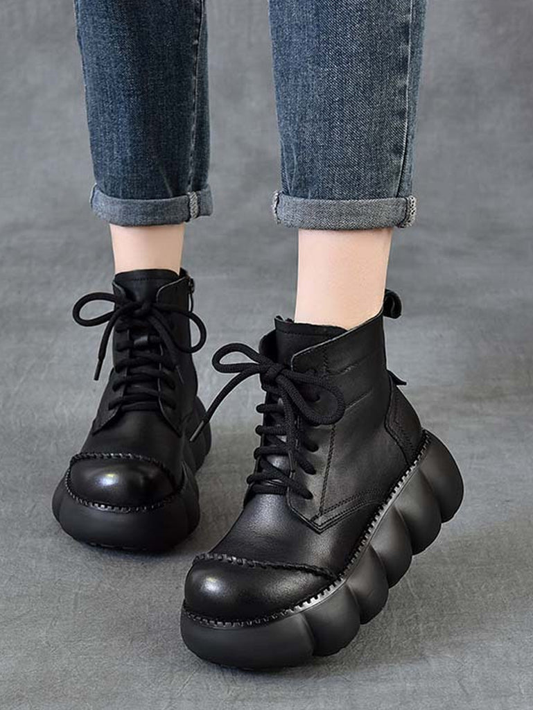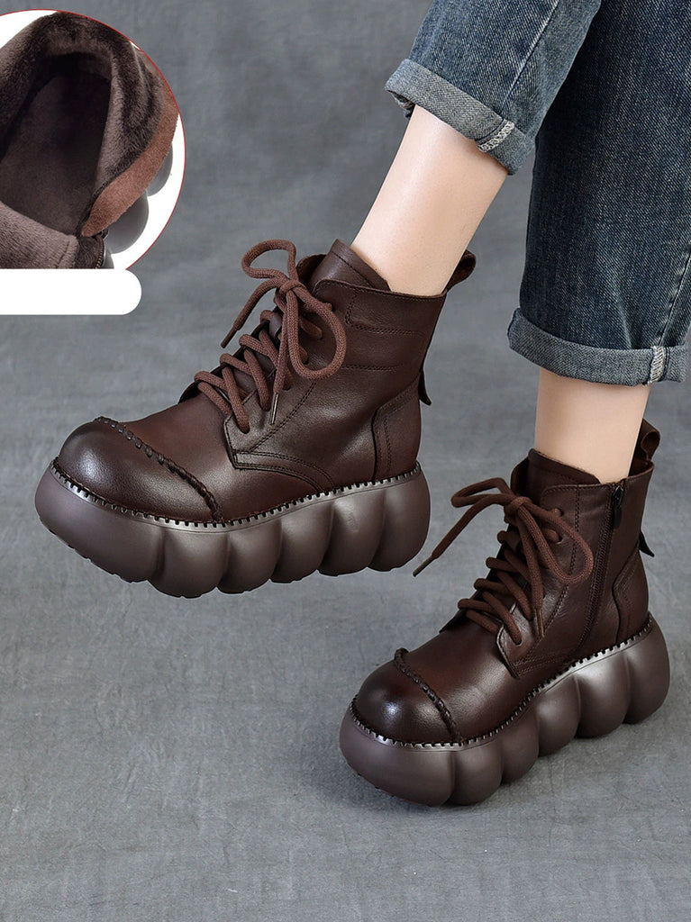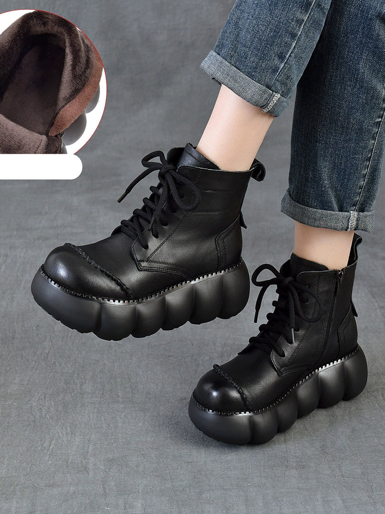 Women Winter Genuine Leather Platform Ankle Boots