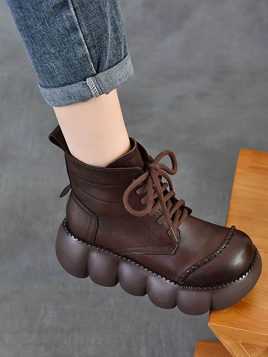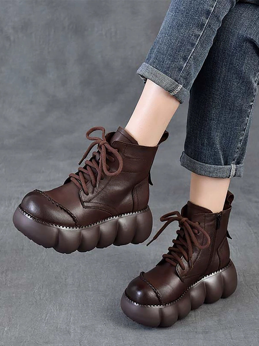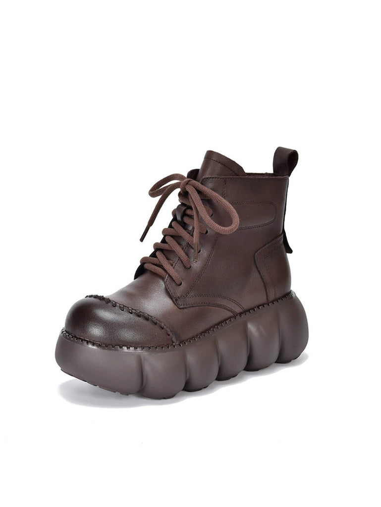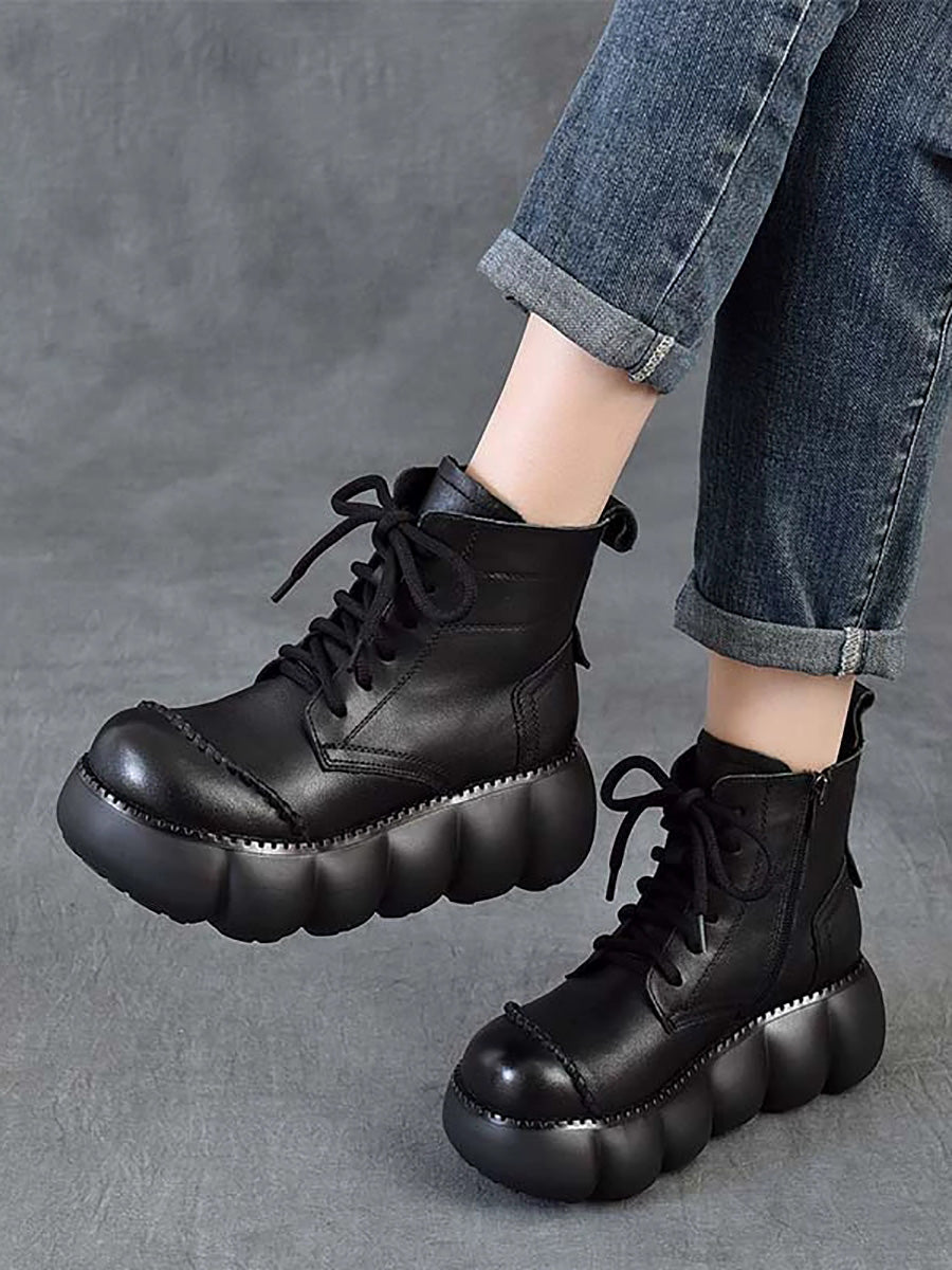 Women Winter Genuine Leather Platform Ankle Boots