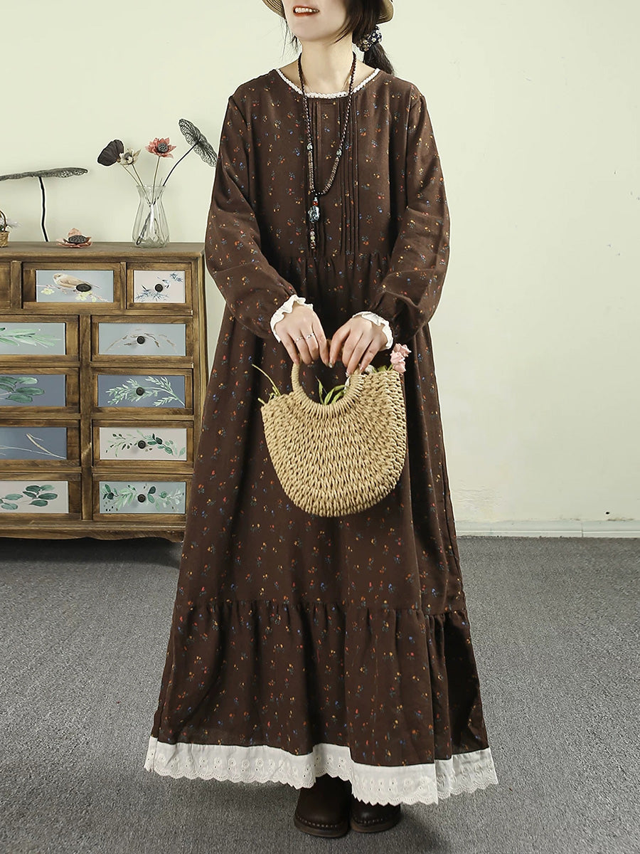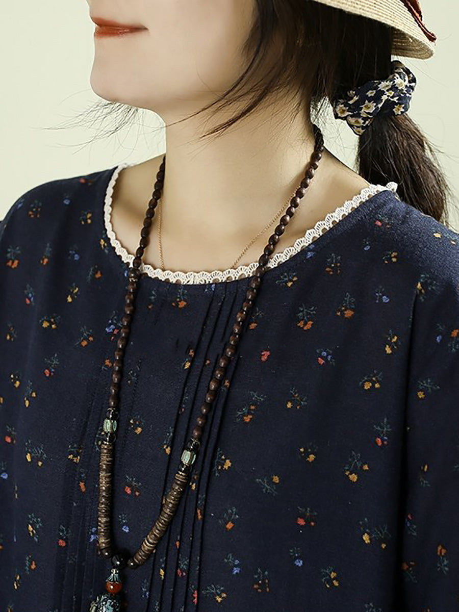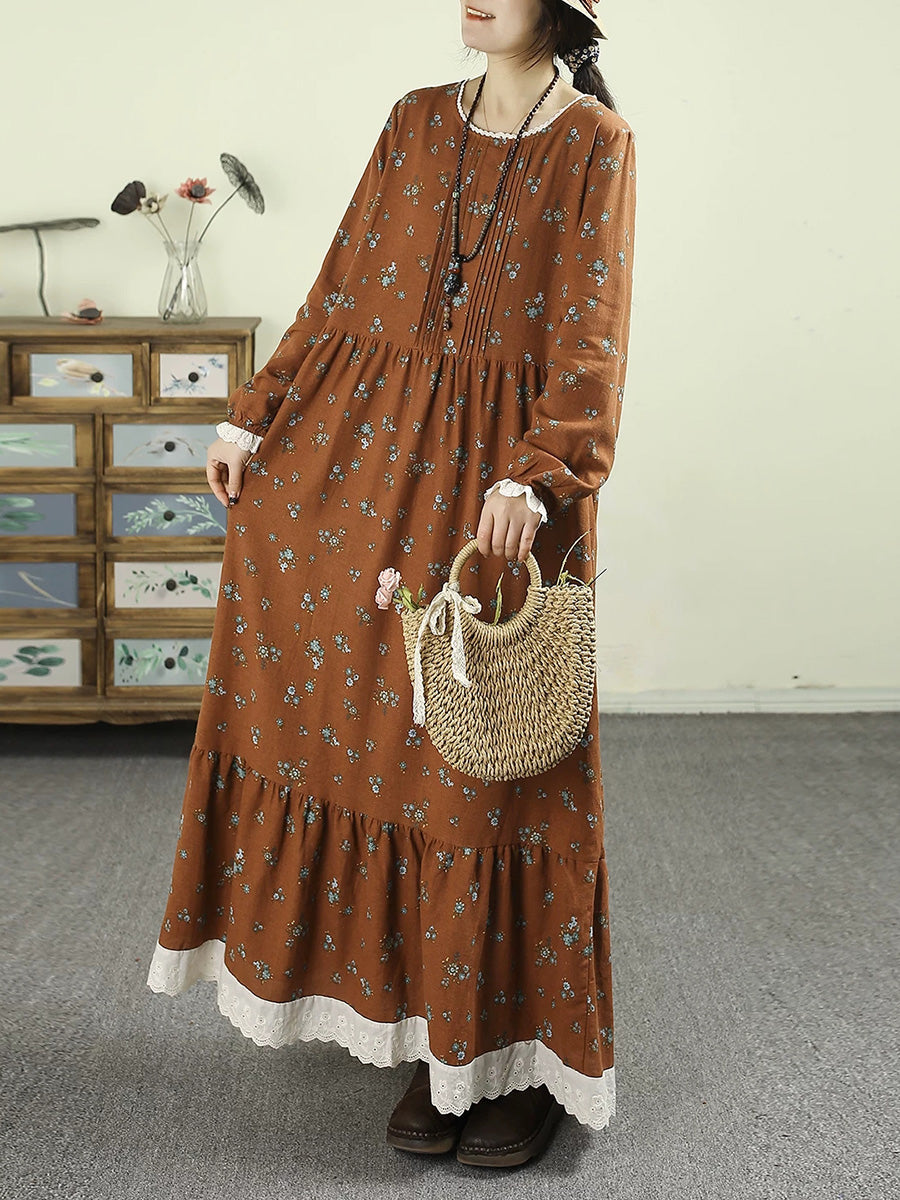 Women Spring Floral O-Neck Lace 100%Cotton Dress