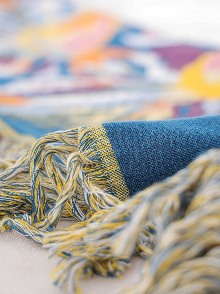 100%Cotton Flower Bedcover Tassel Sofa Blanket