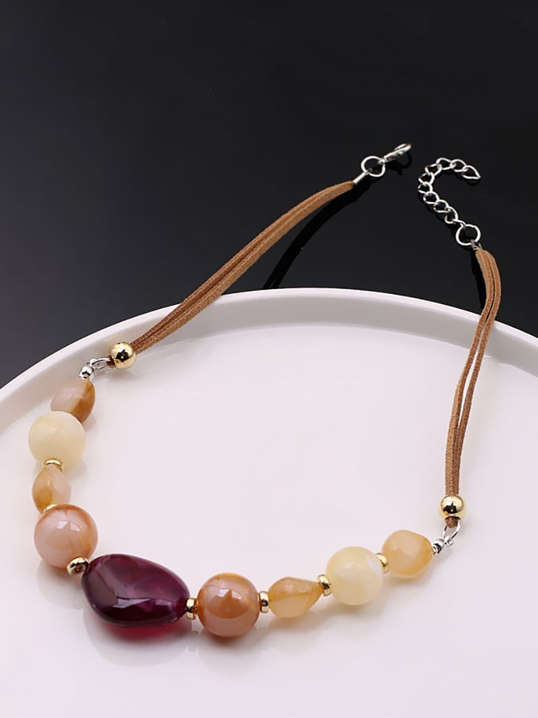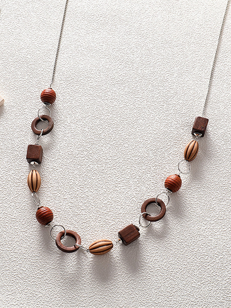 Women Vintage Geometric Wooden Plastic Alloy Necklace