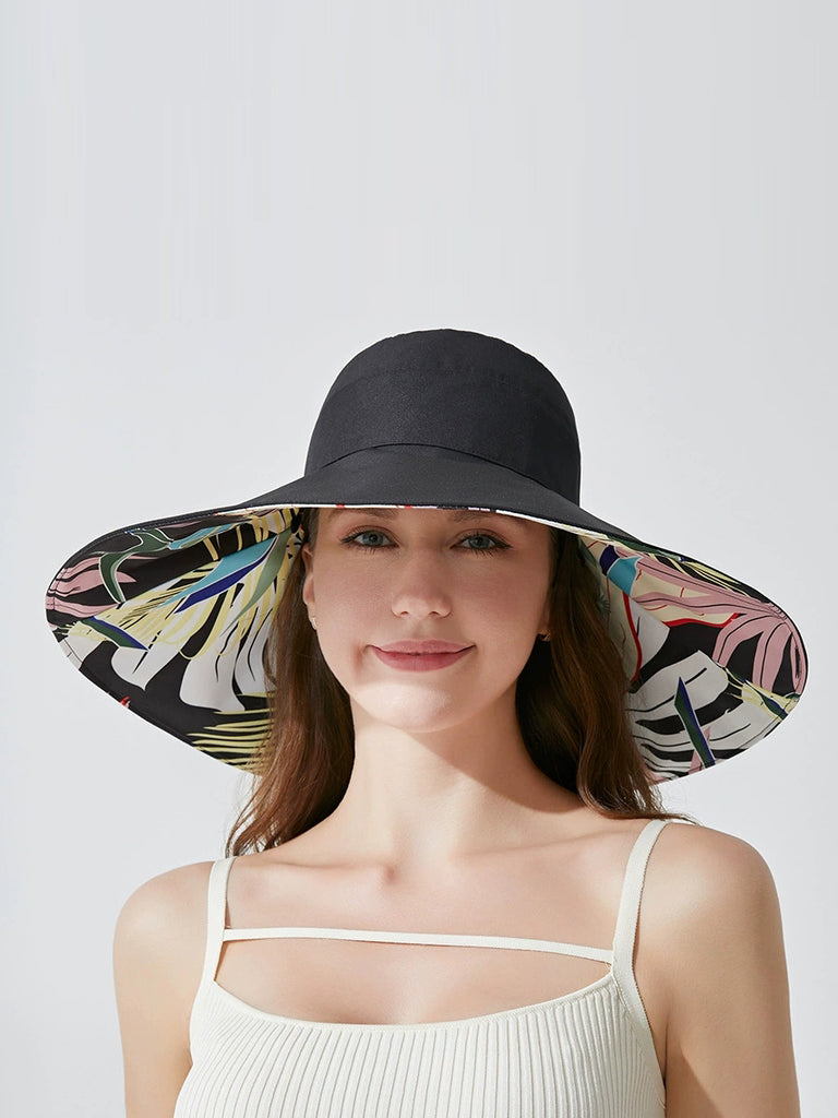 Women Summer Artsy Flower Dual-side Wearing Sunproof Hat