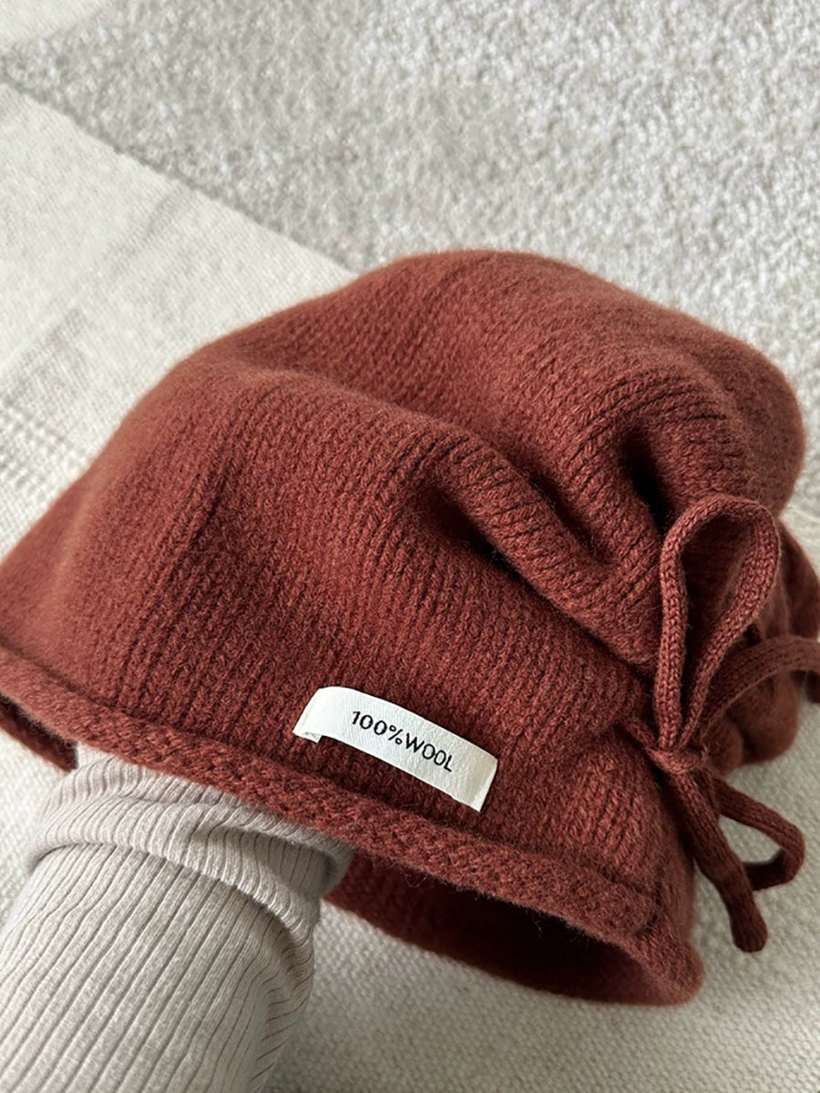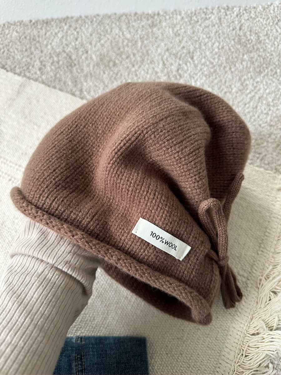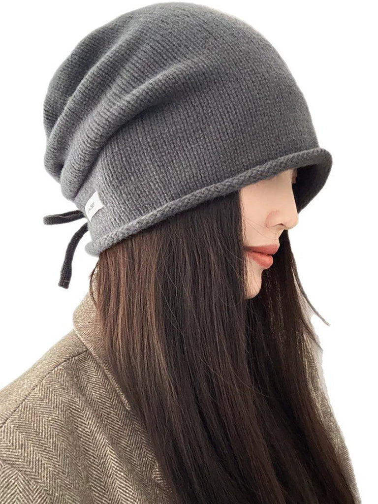 Women Winter Pure Color Rope Knitteed Hat