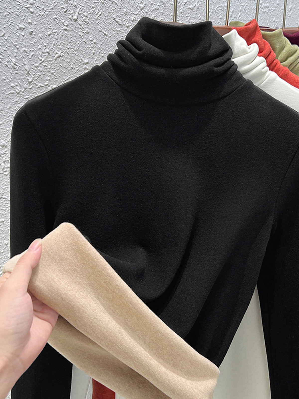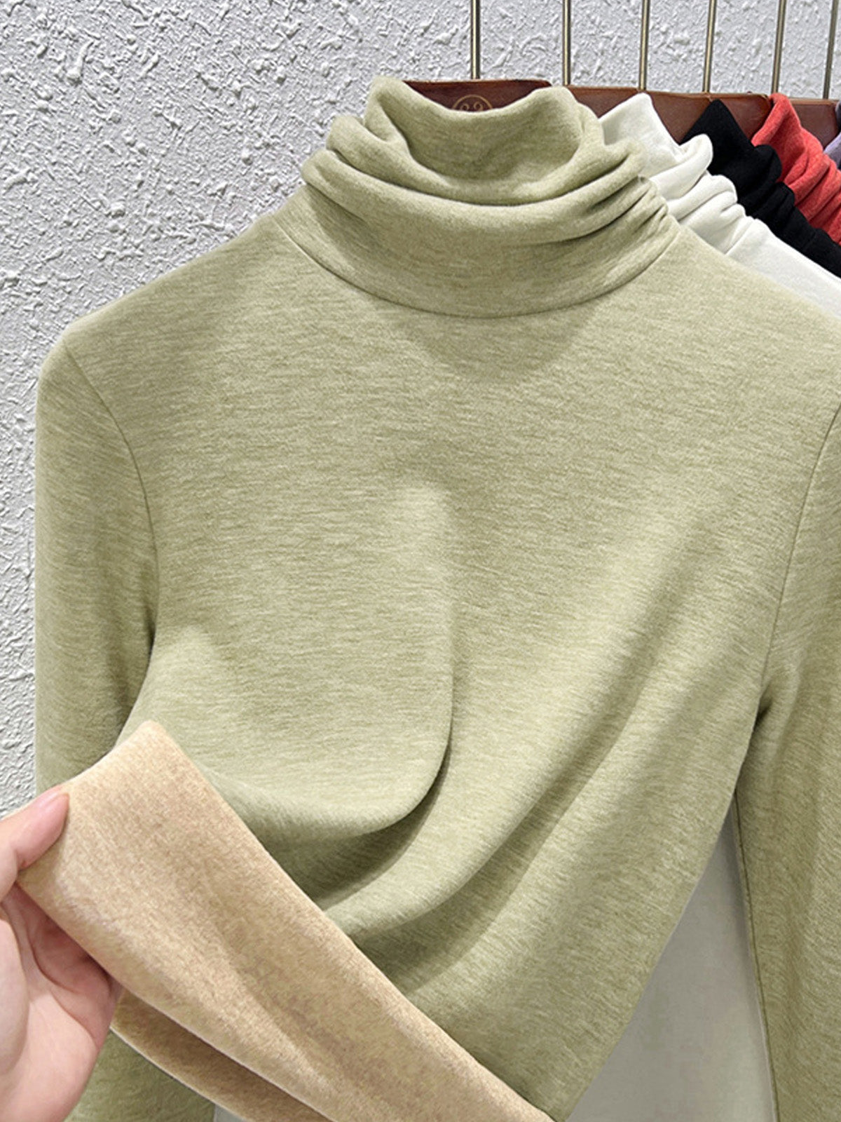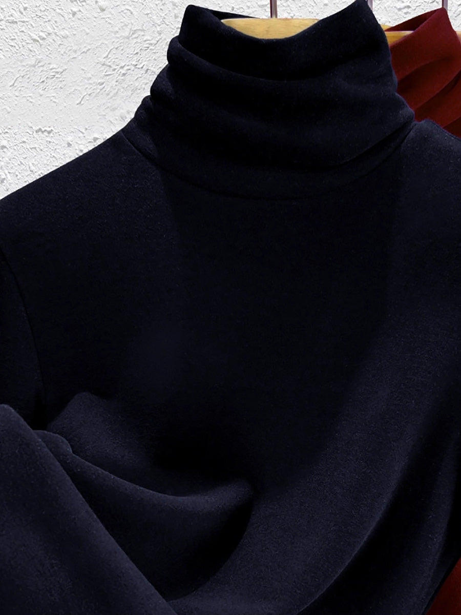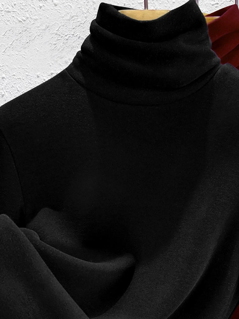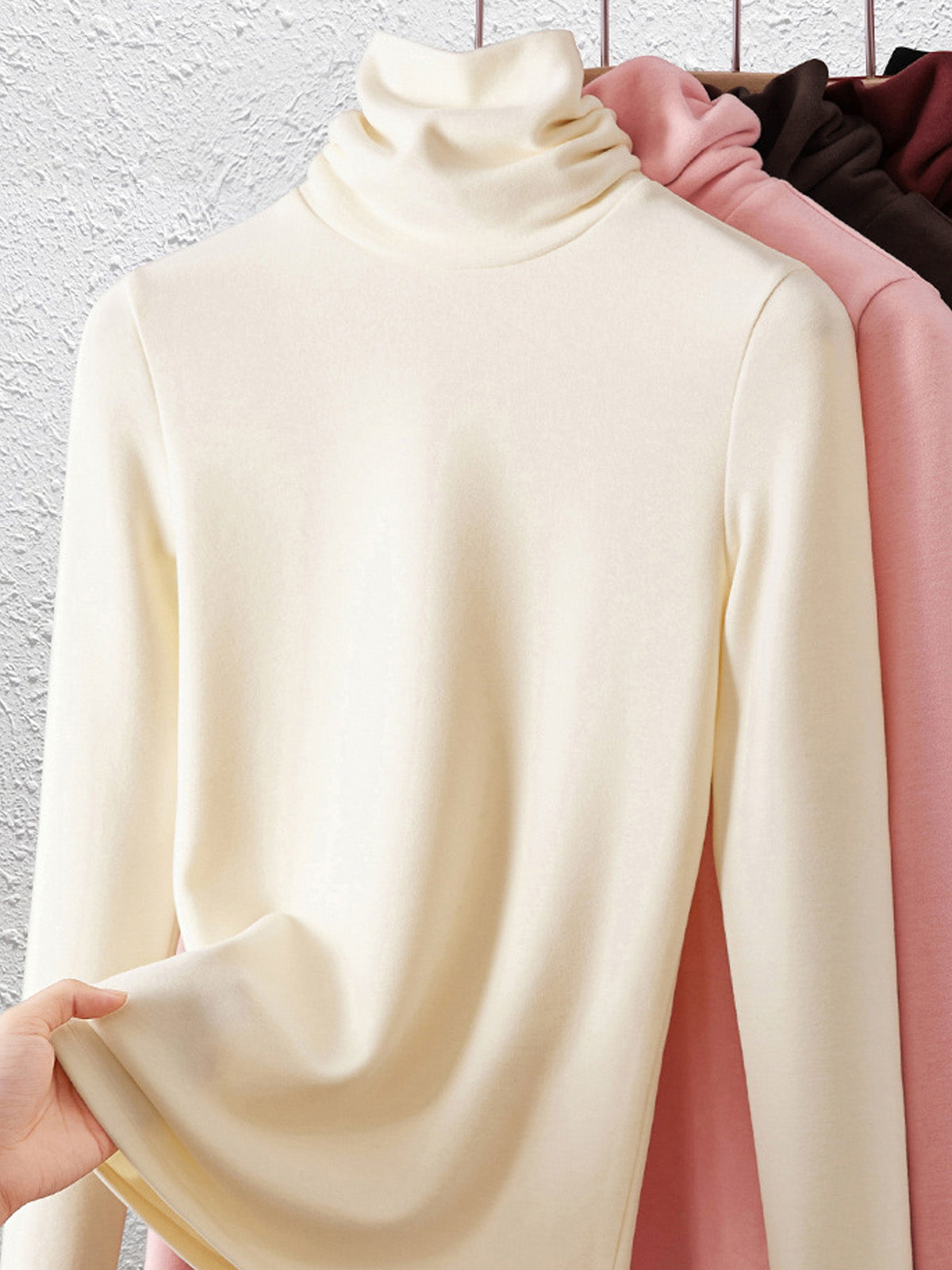 Women Casual Winter Pure Color Turtleneck Base Blouse