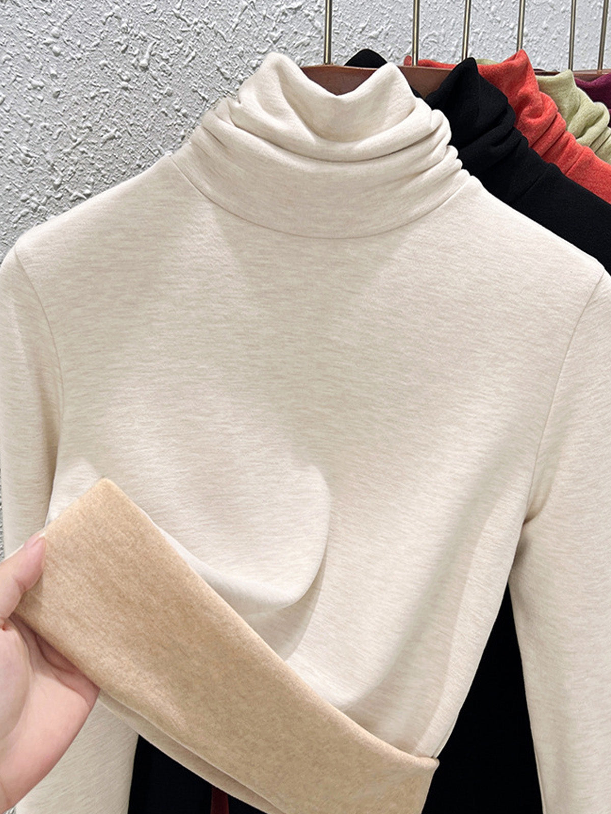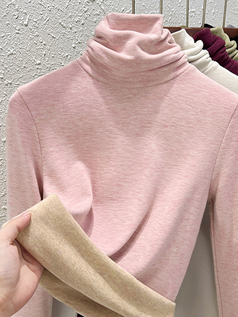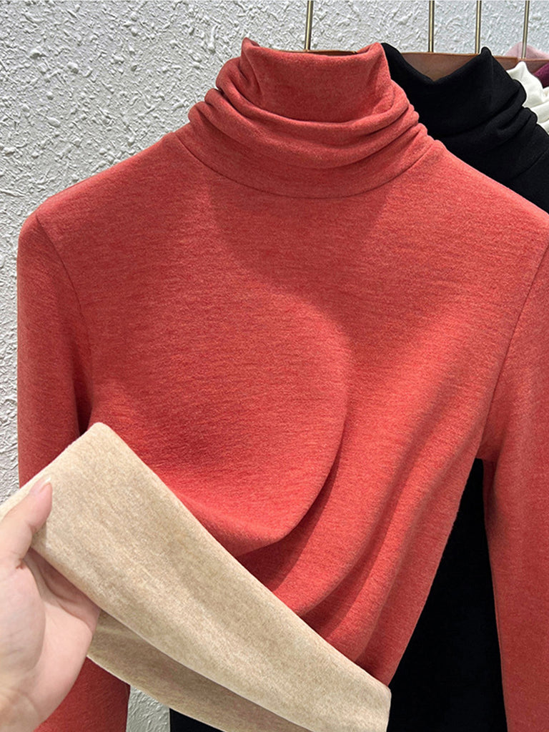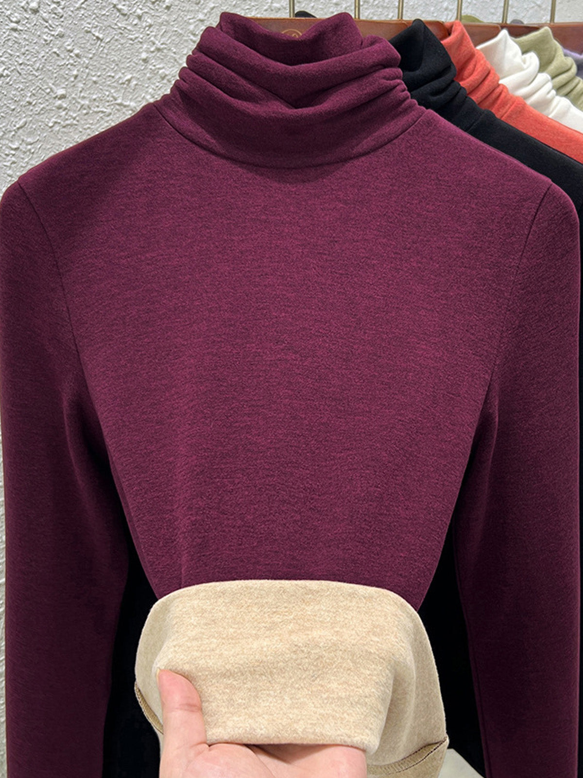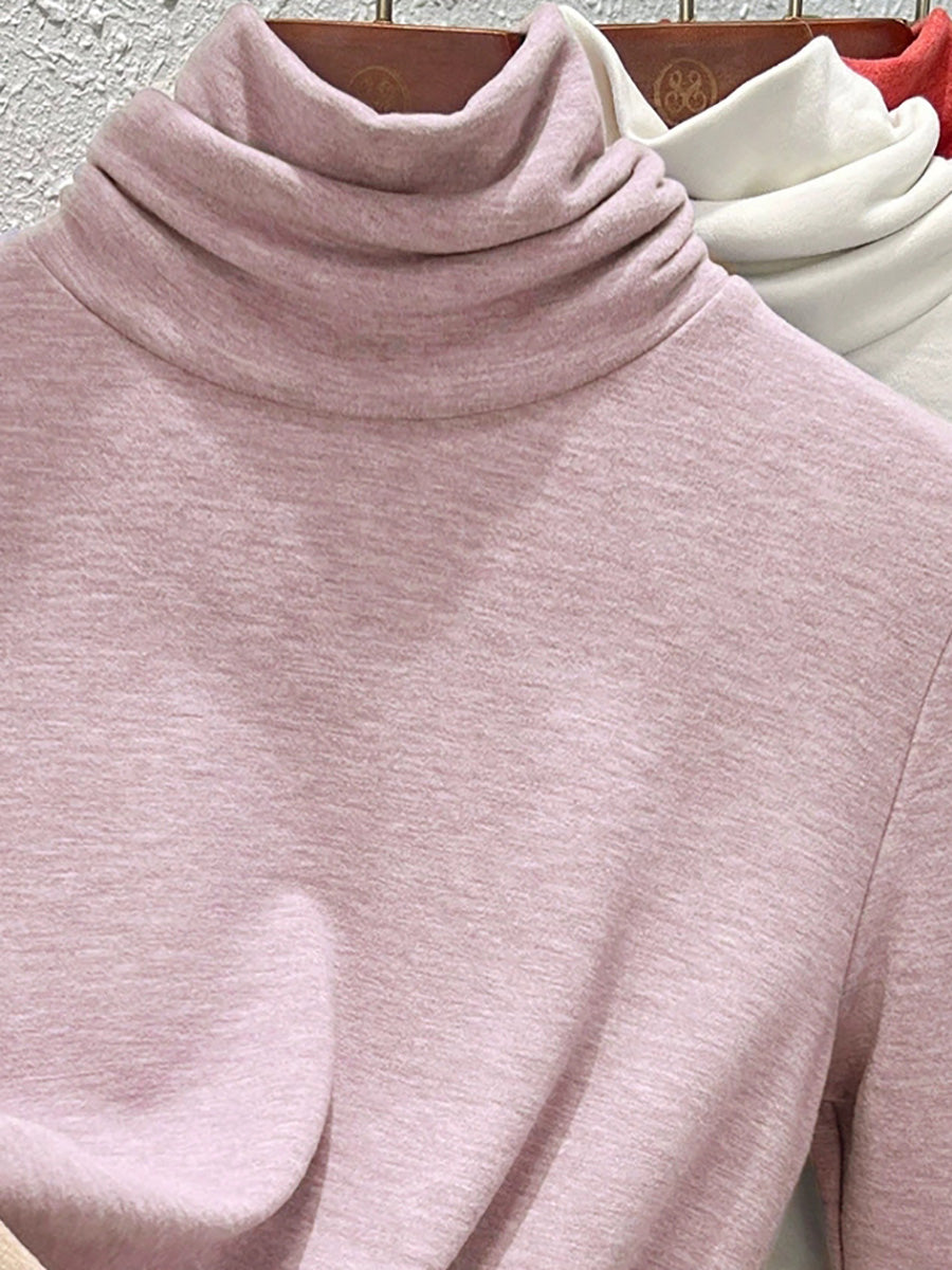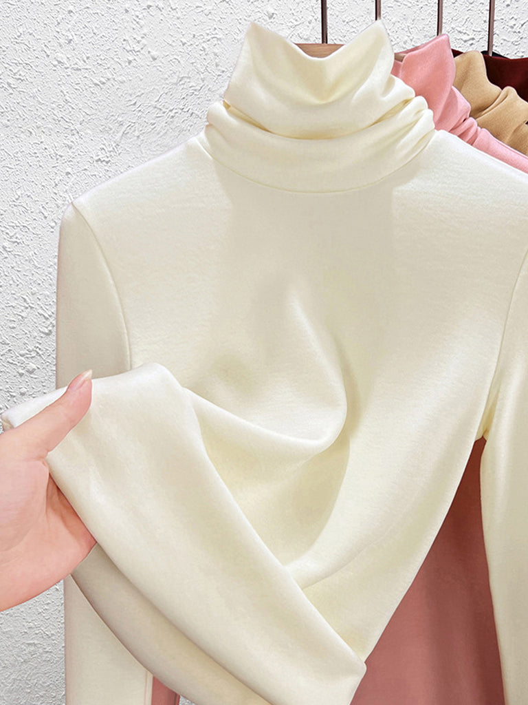 Women Casual Winter Pure Color Turtleneck Base Blouse