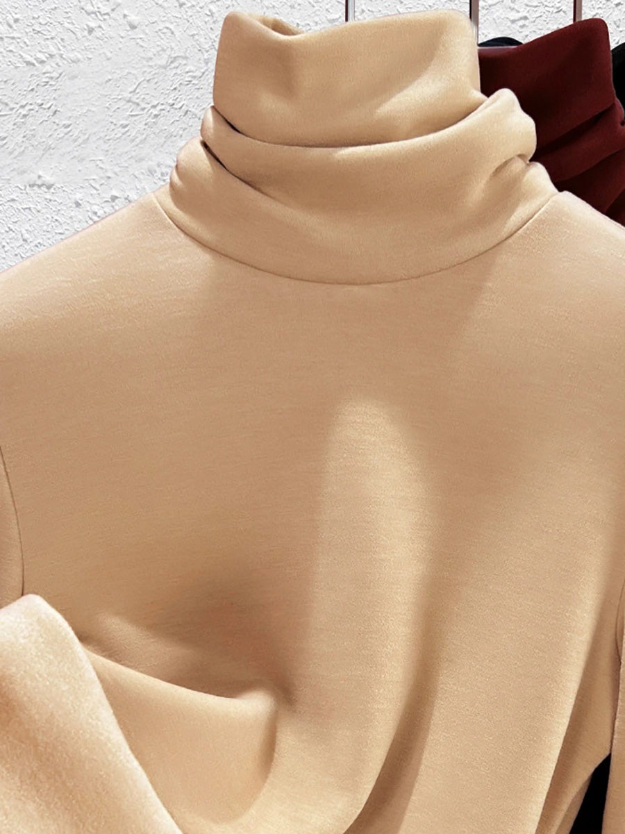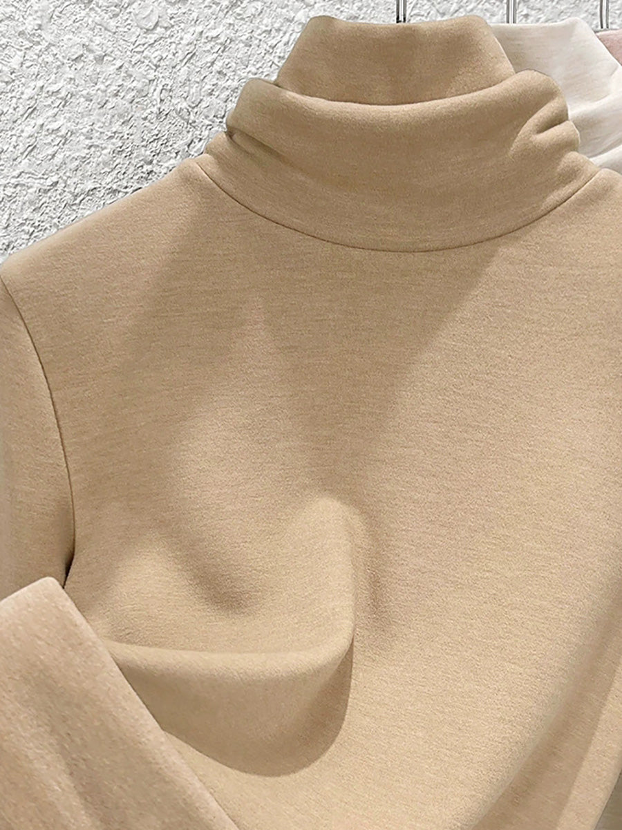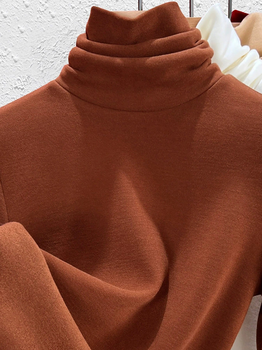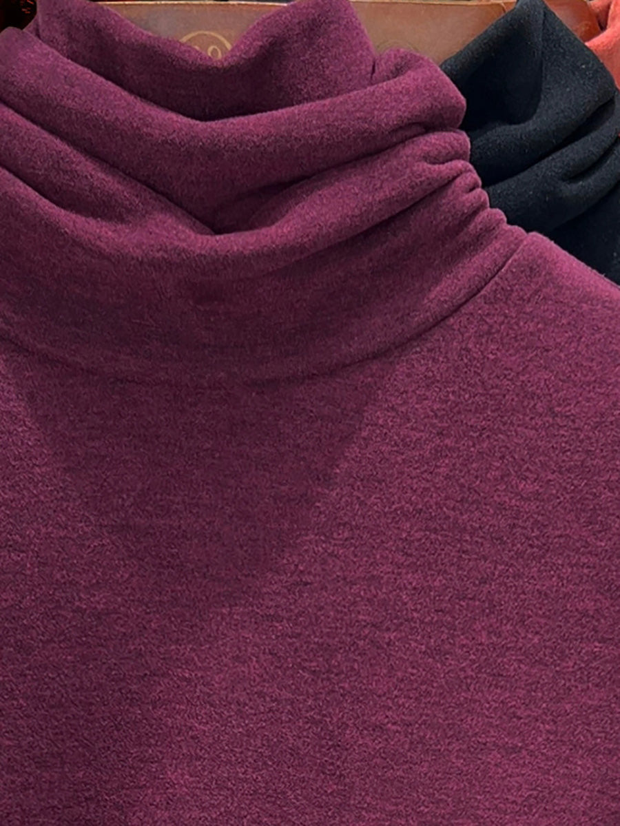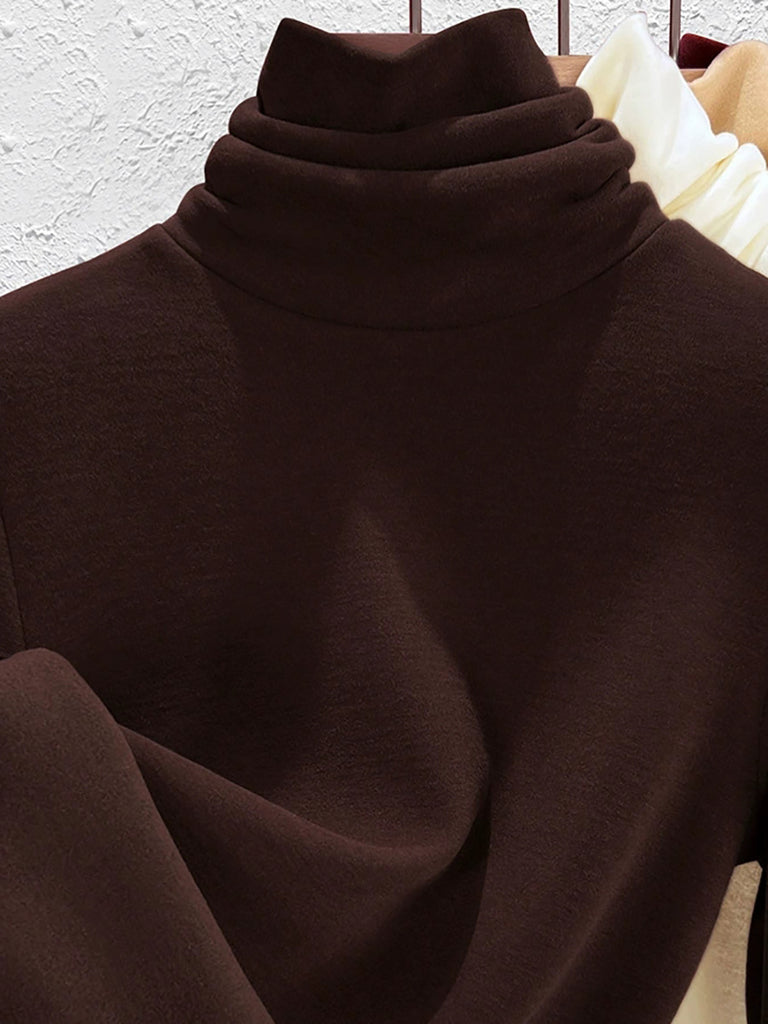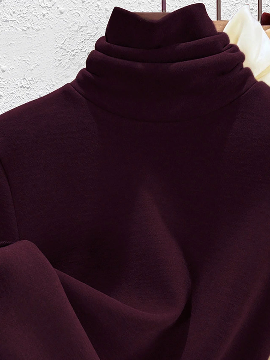 Women Casual Winter Pure Color Turtleneck Base Blouse
