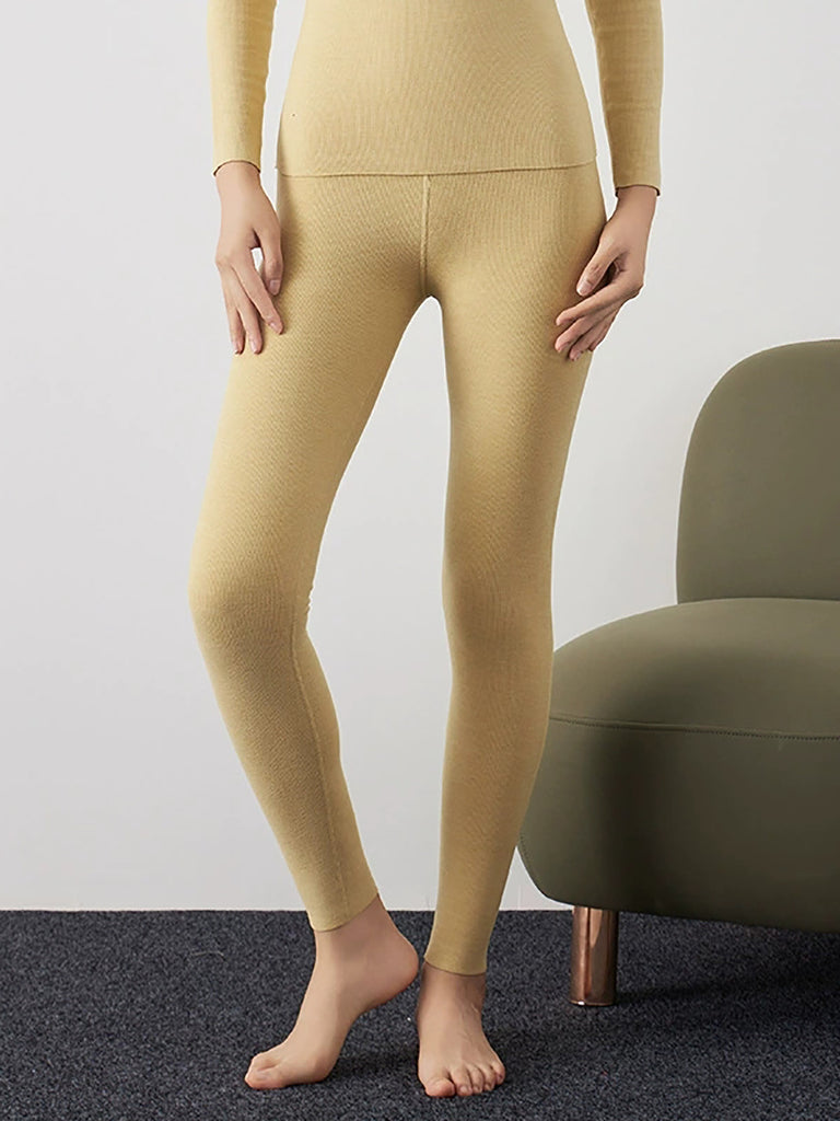 Women Winter Warm Pure Color Lace High Waist Leggings