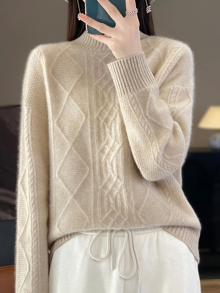 Women Autumn Flower Half-Turtleneck Knitted Sweater