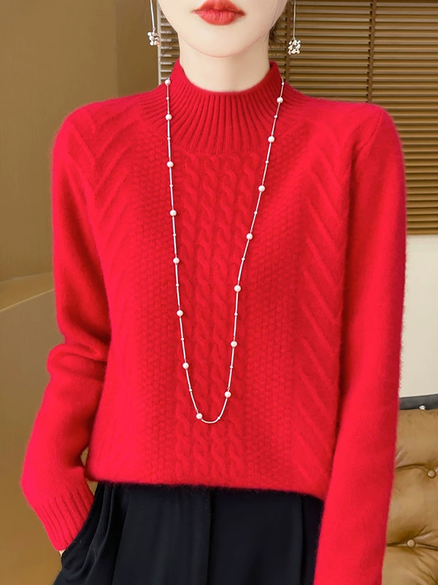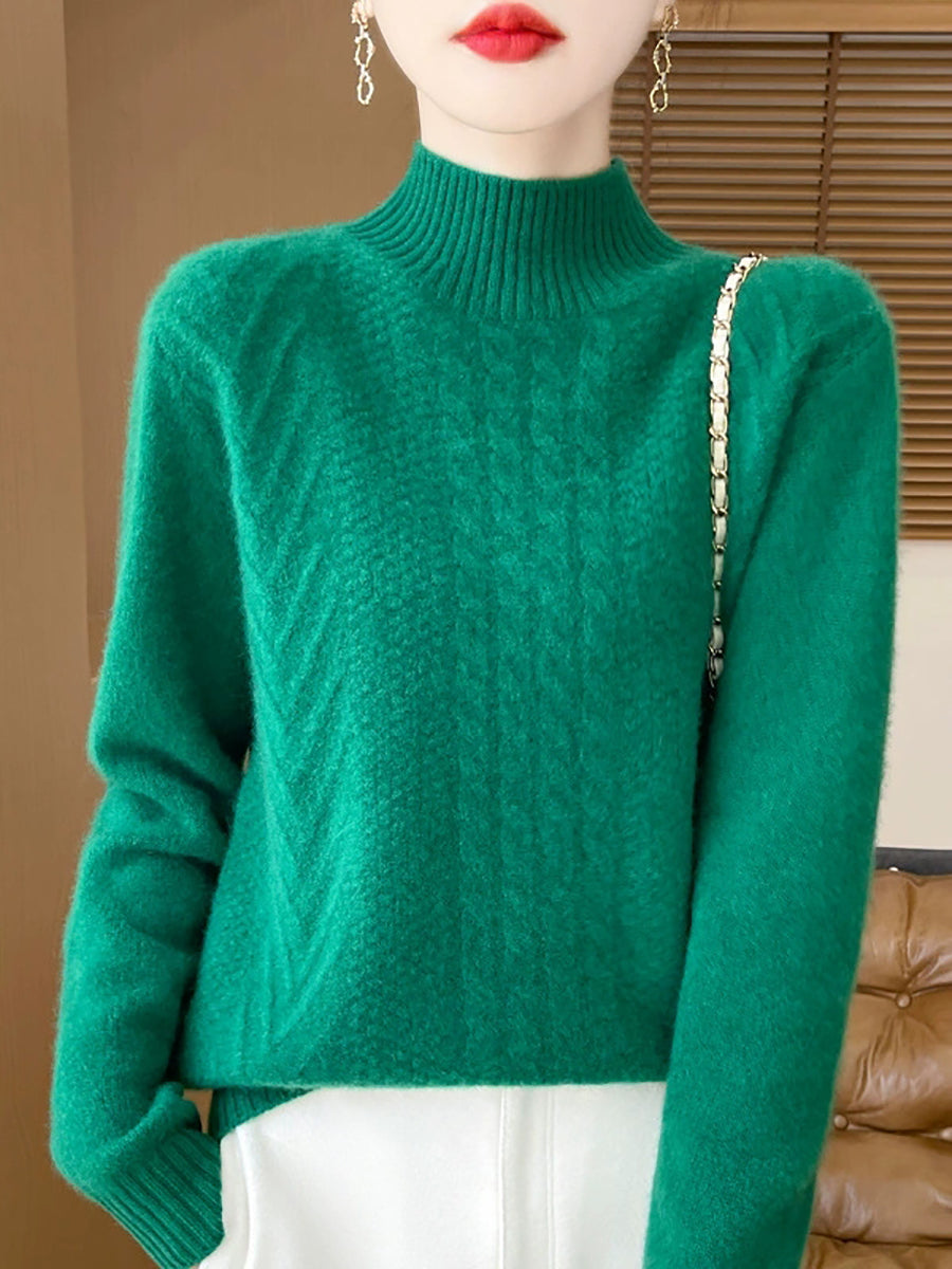 Women Casual Spring Cable-knit Half-turtleneck Sweater