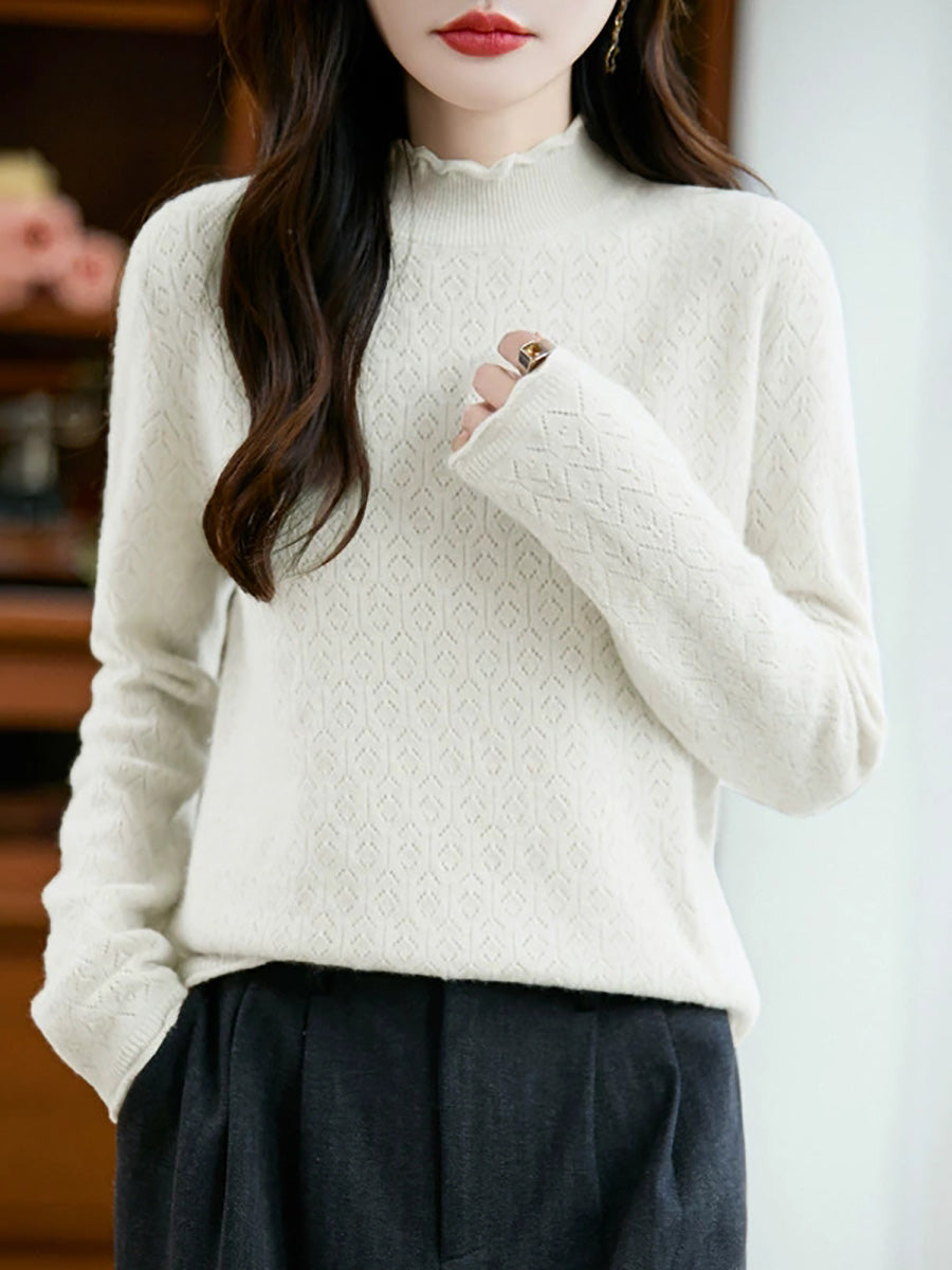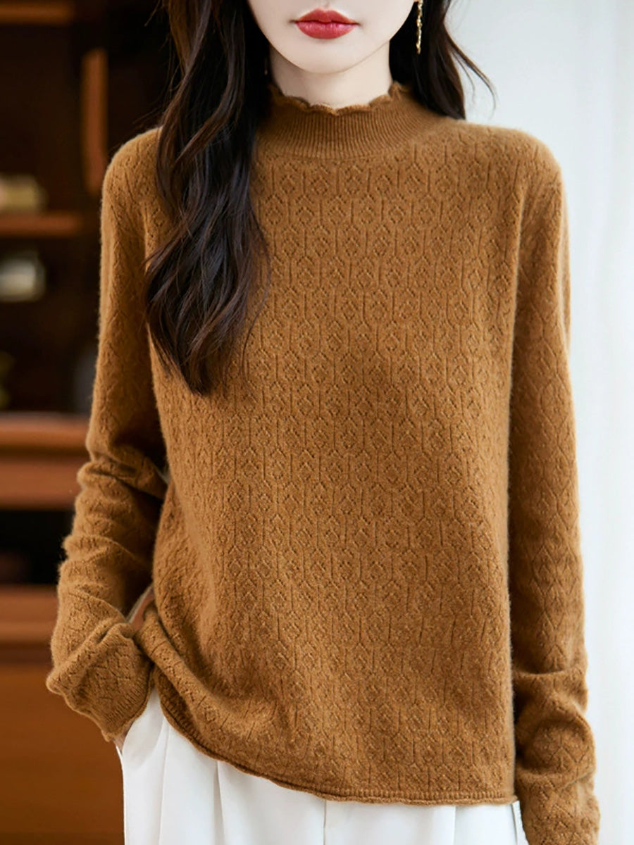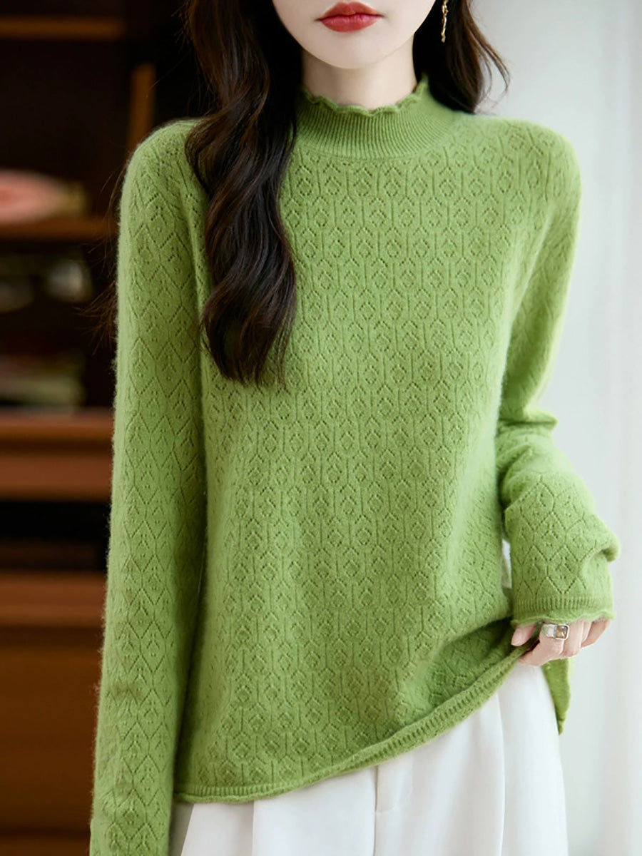 Women Artsy Spring Stand Collar Knitted Sweater