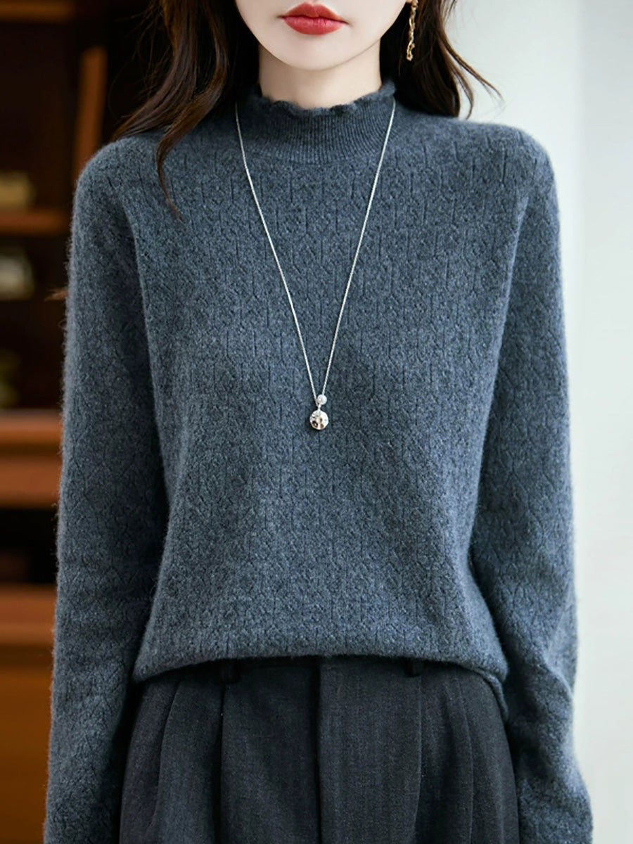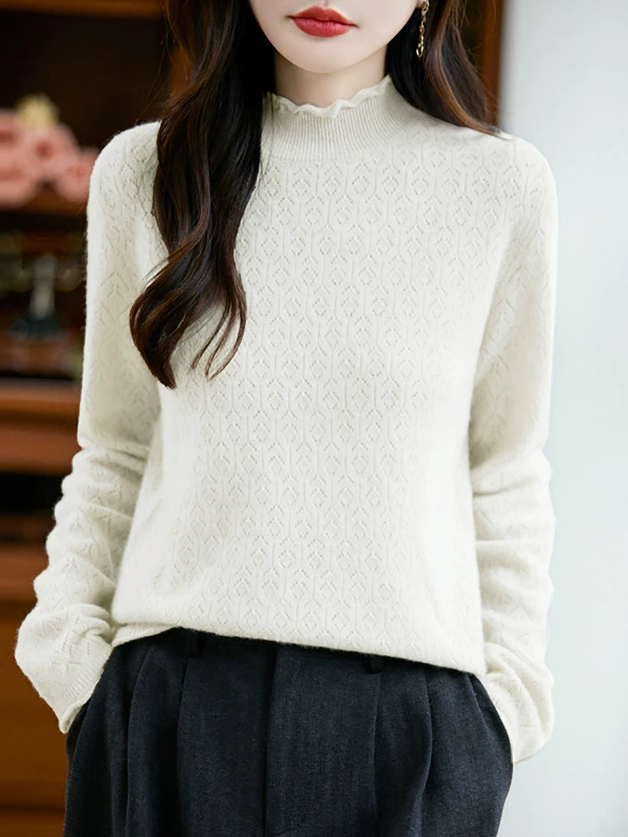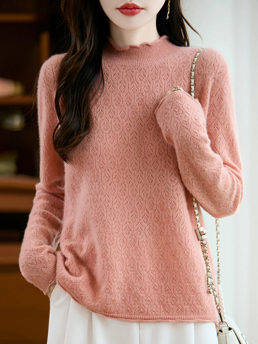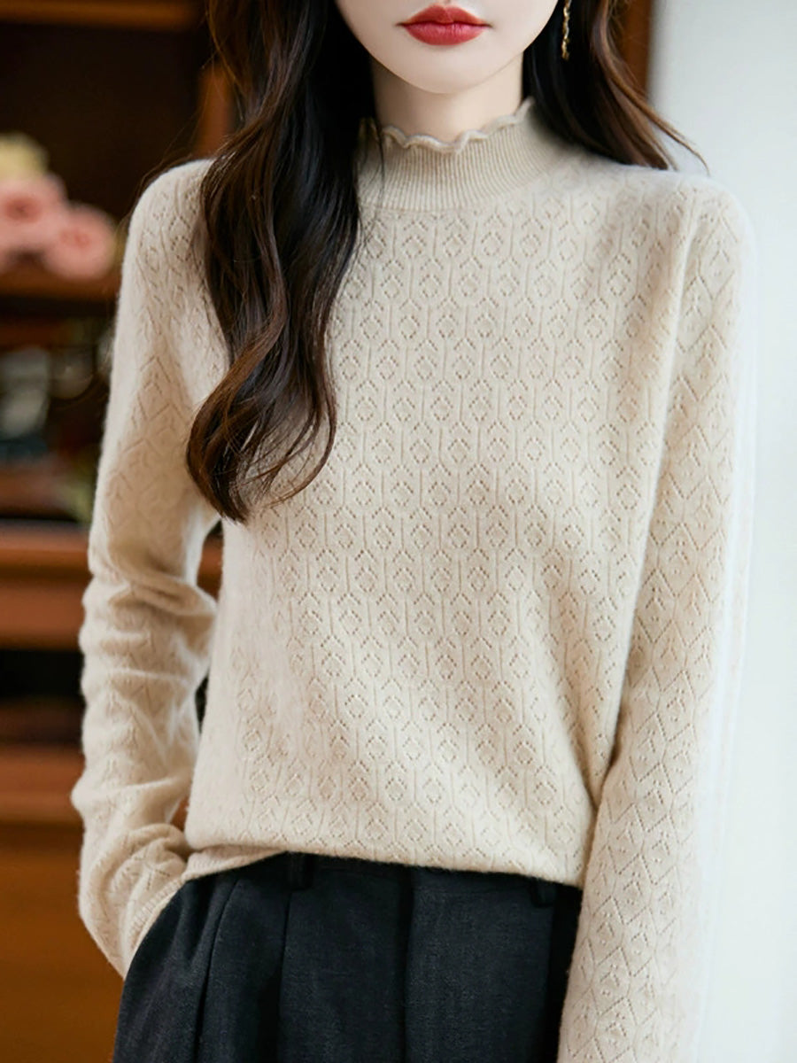 Women Artsy Spring Stand Collar Knitted Sweater