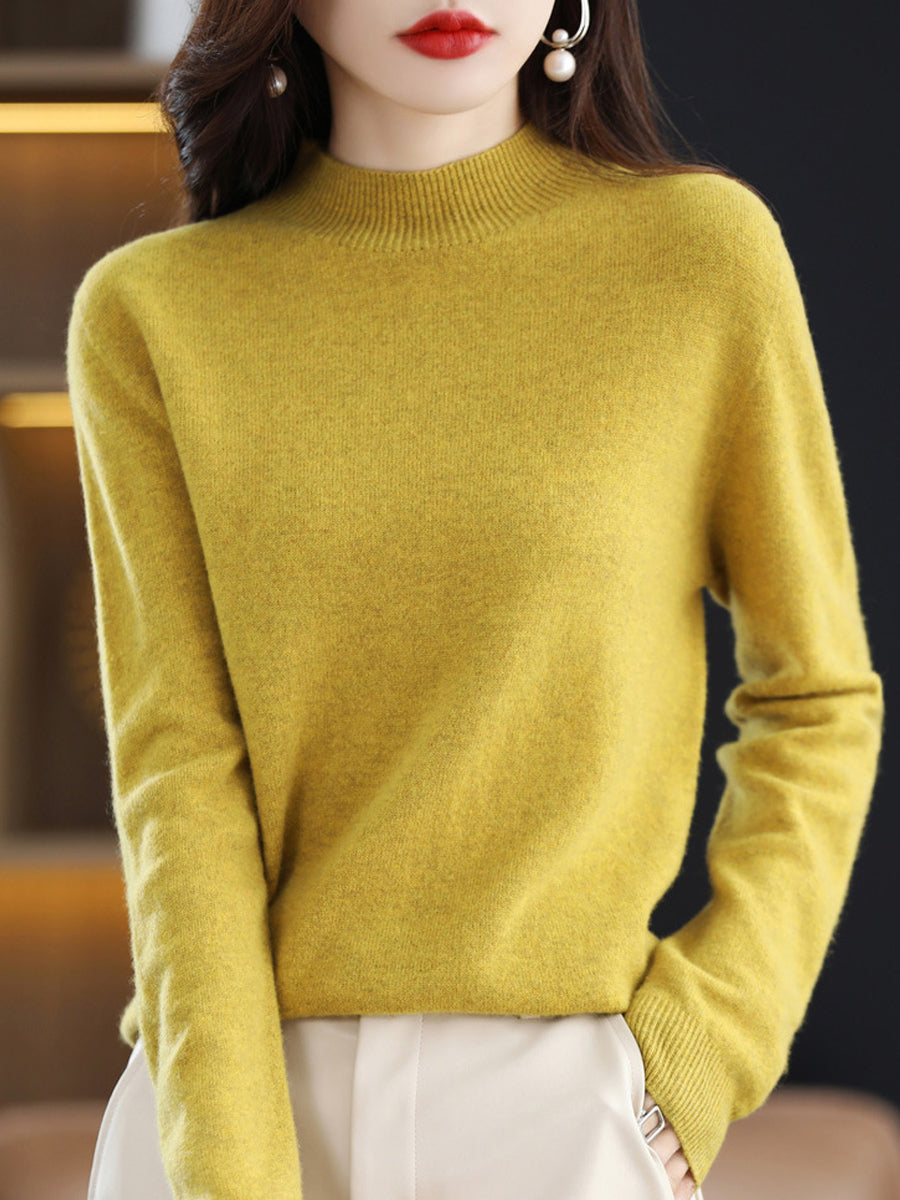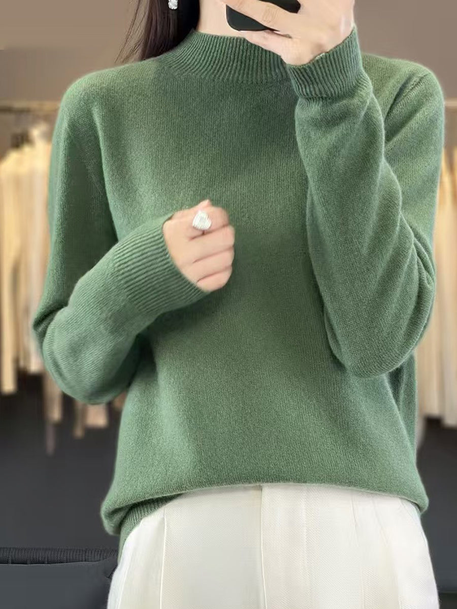 Women Winter Casual Pure Color Half-Turtleneck Sweater