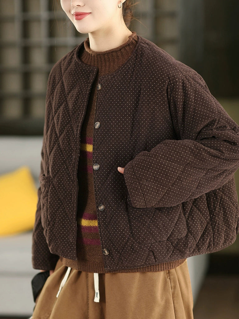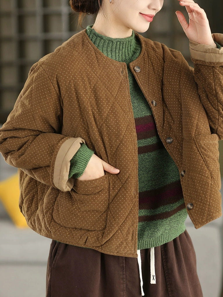 Women Winter Retro Dot O-Neck Corduroy Padded Jacket