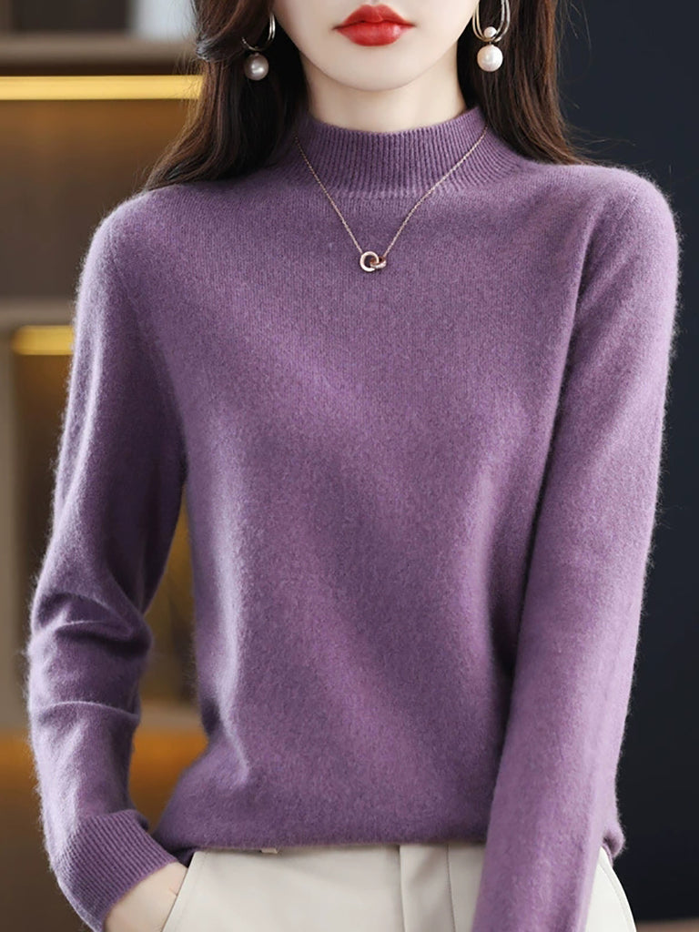 Women Autumn Casual Knitted Wool Half-Turtleneck Sweater