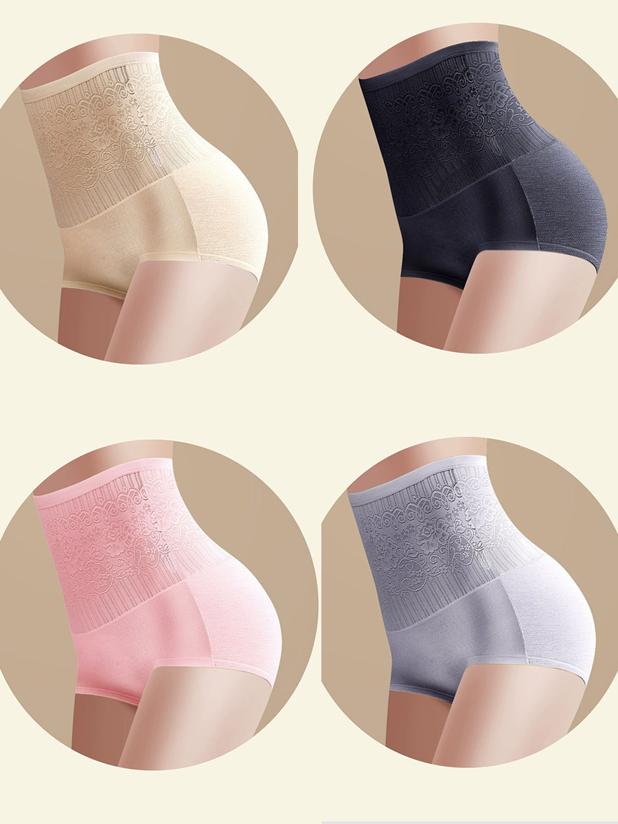 4 Pieces Women Artsy Flower High Waist Underwear