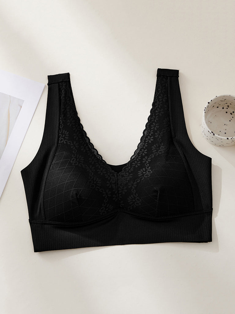 Women Artsy Pure Color Lace Satin Seamless Bra