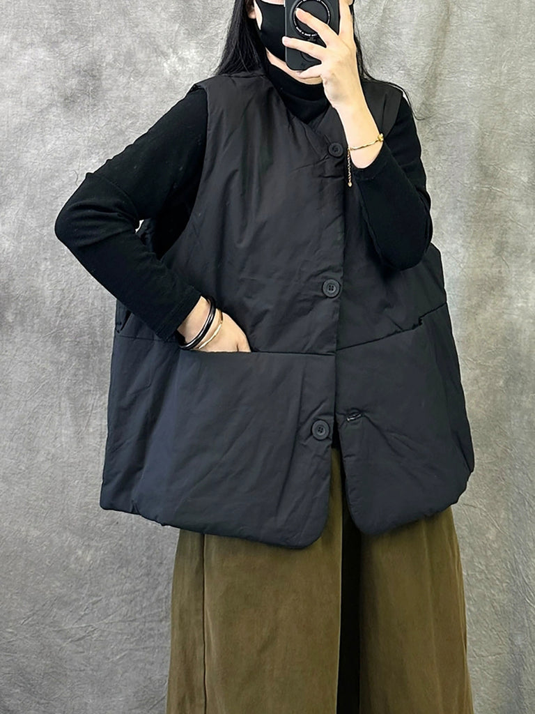Plus Size Women Vintage Cotton Corduroy Loose Padded Vest