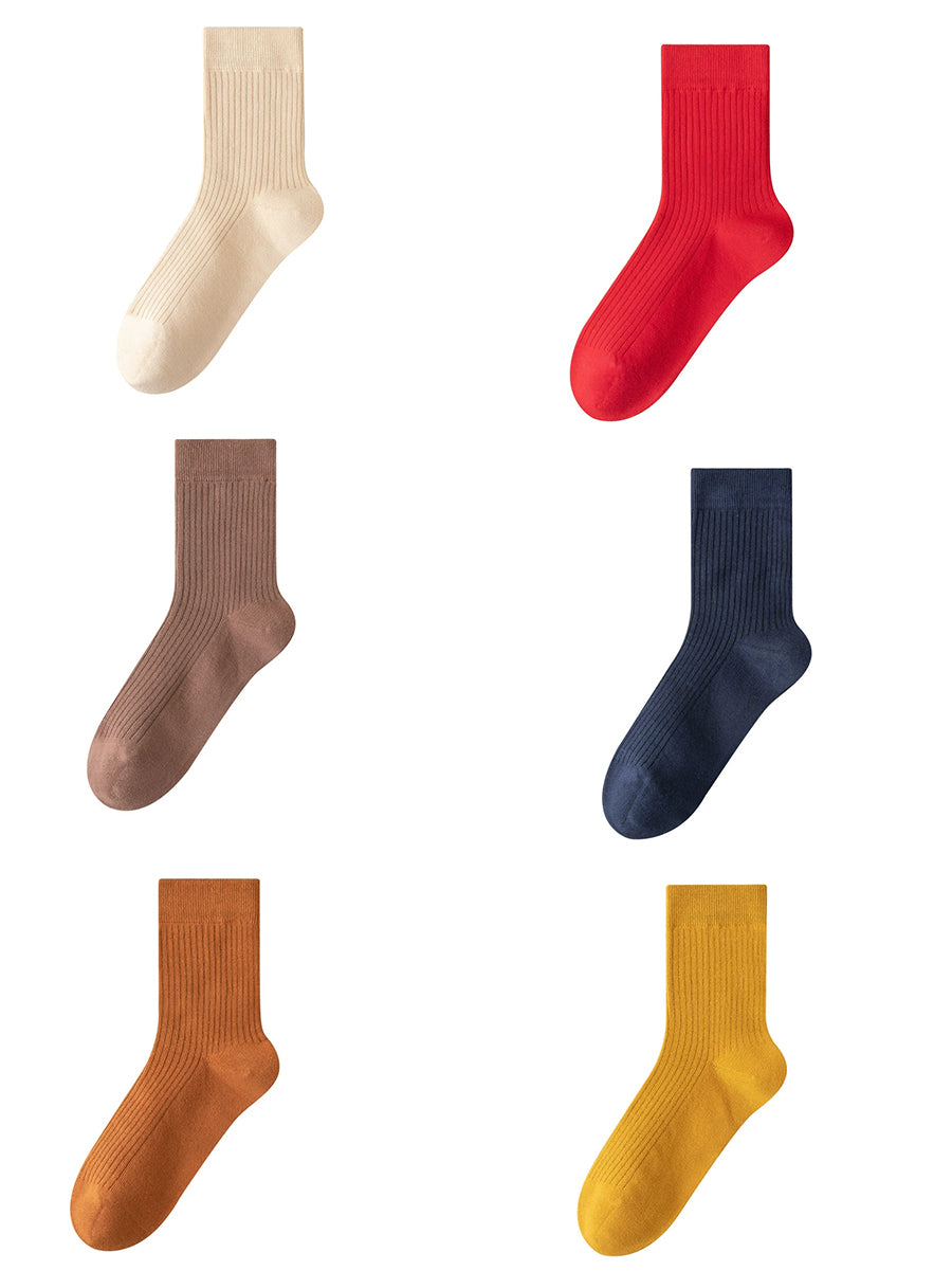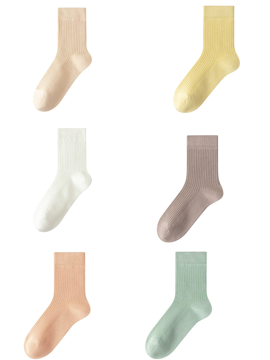 6 Pairs Women Spring Pure Color Socks