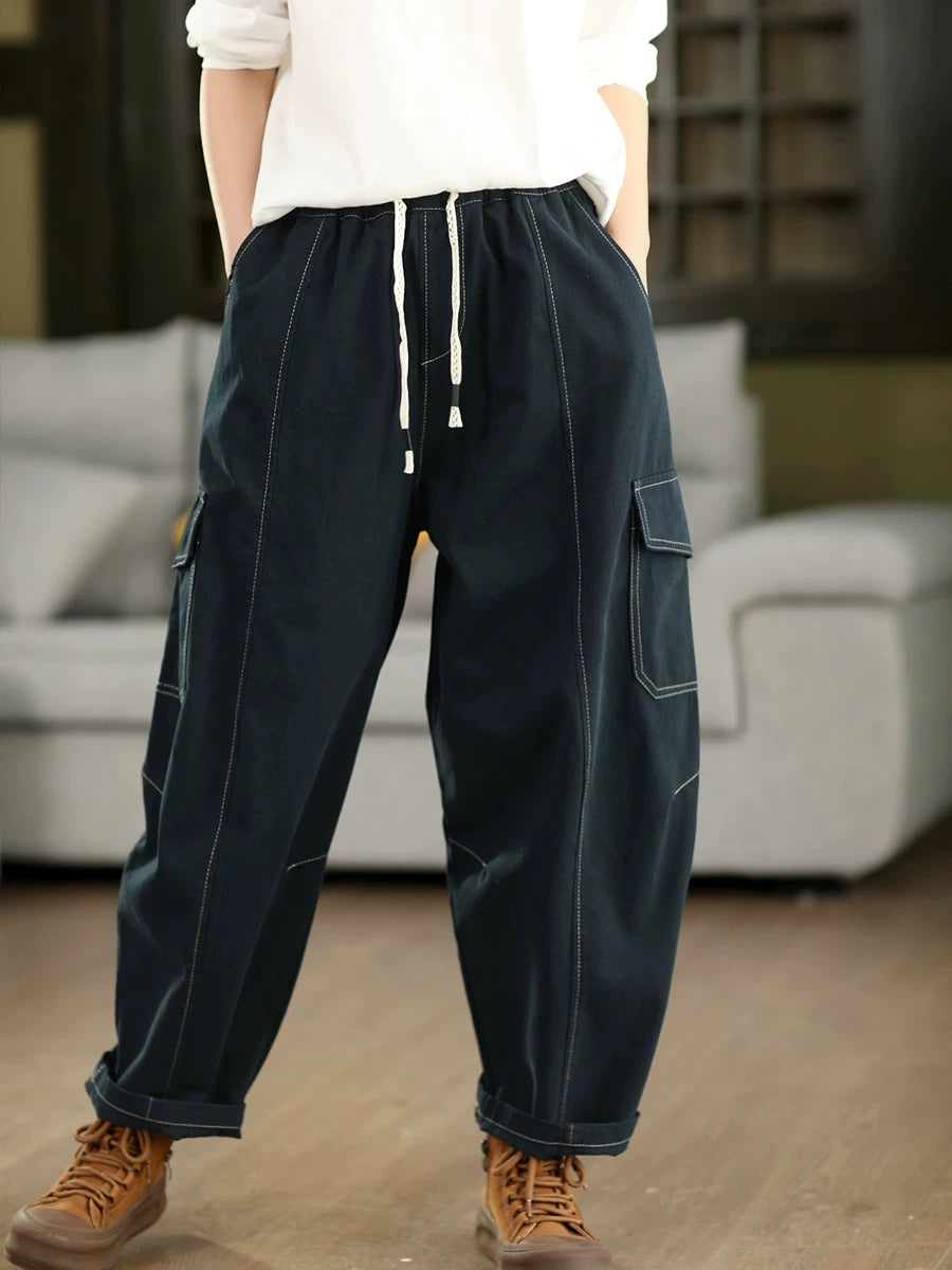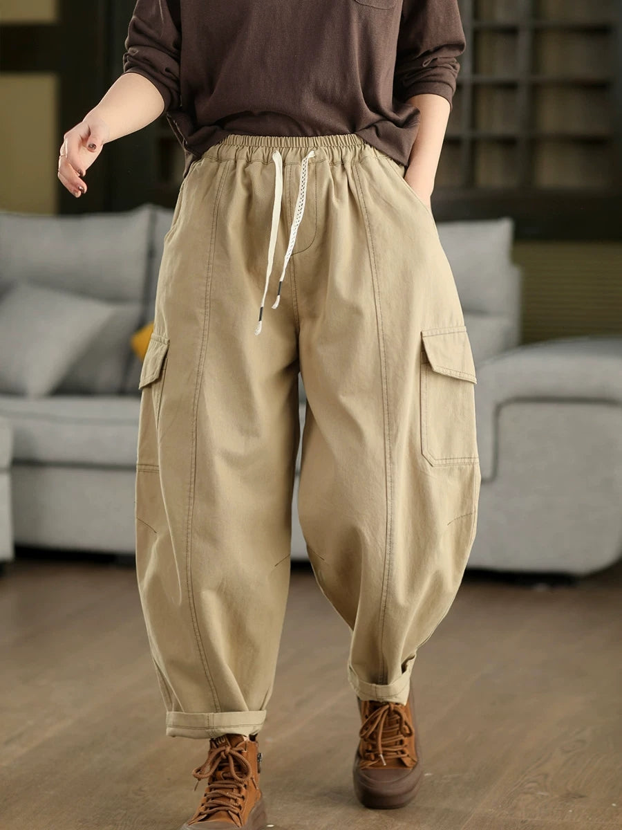 Women Spring Casual Pure Color Cotton Harem Pants