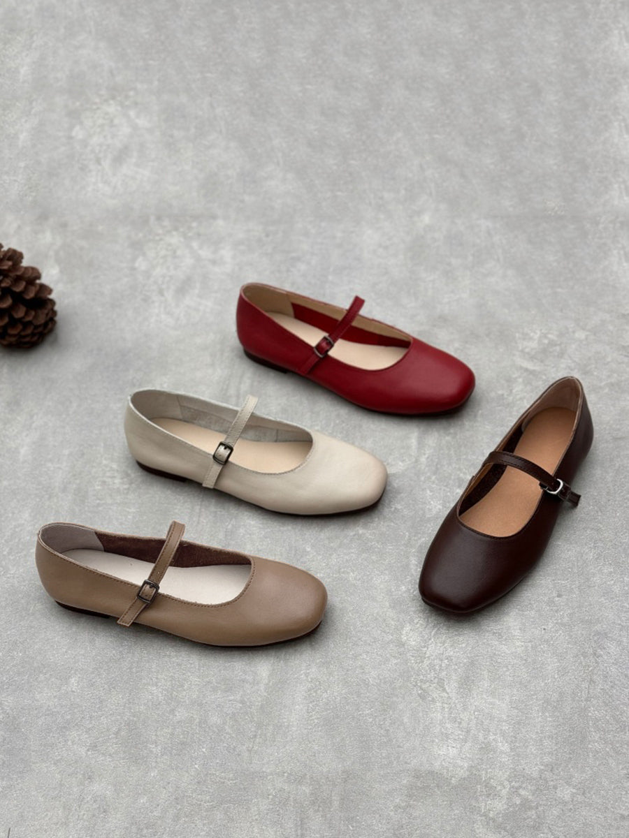 Women Elegant Solid Leather Low Heel Mary Jane Shoes