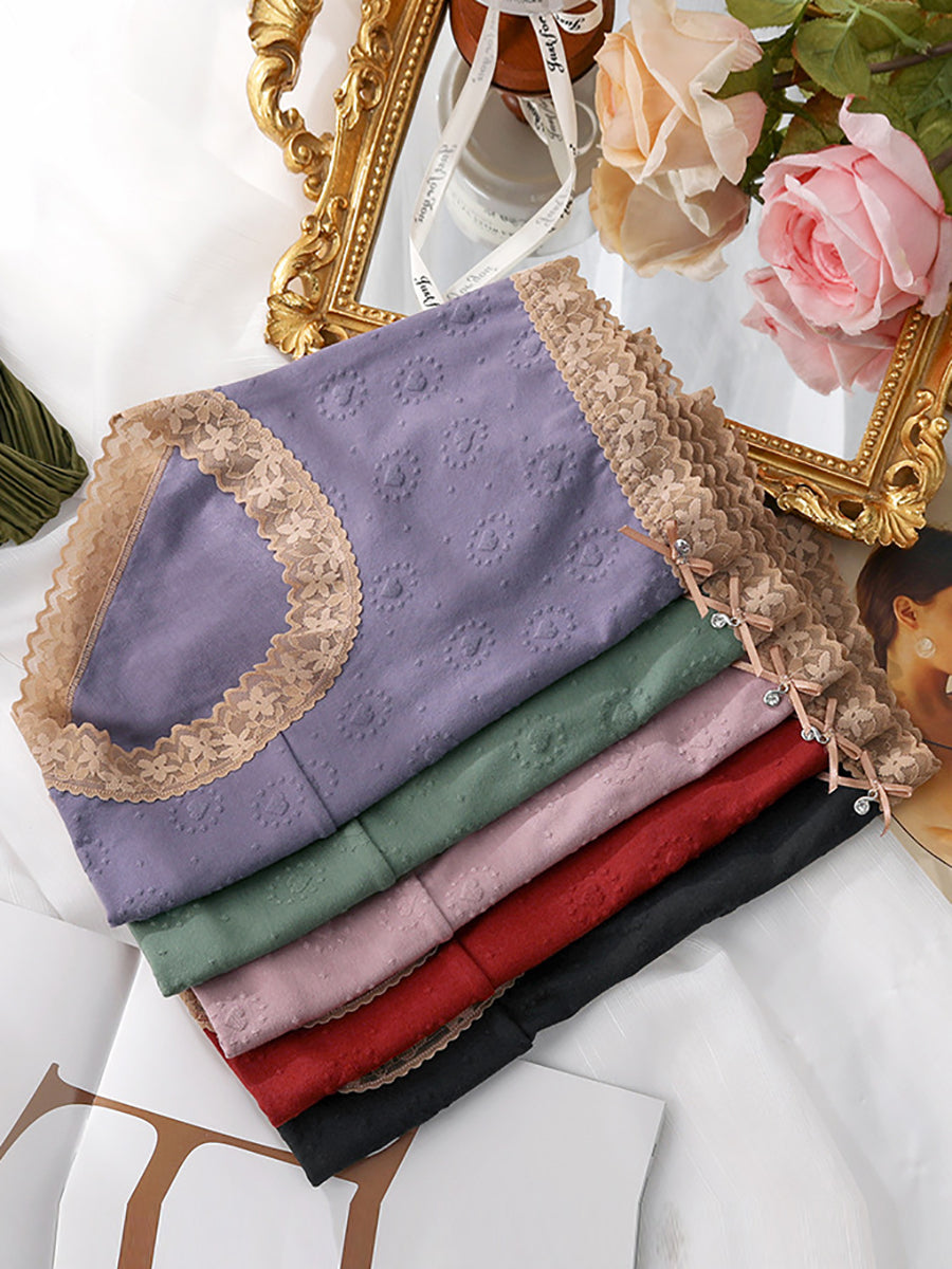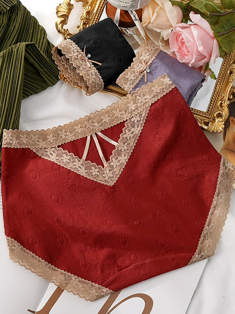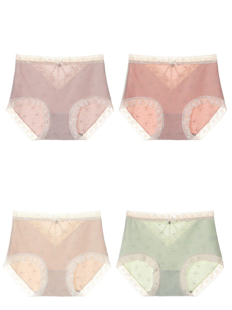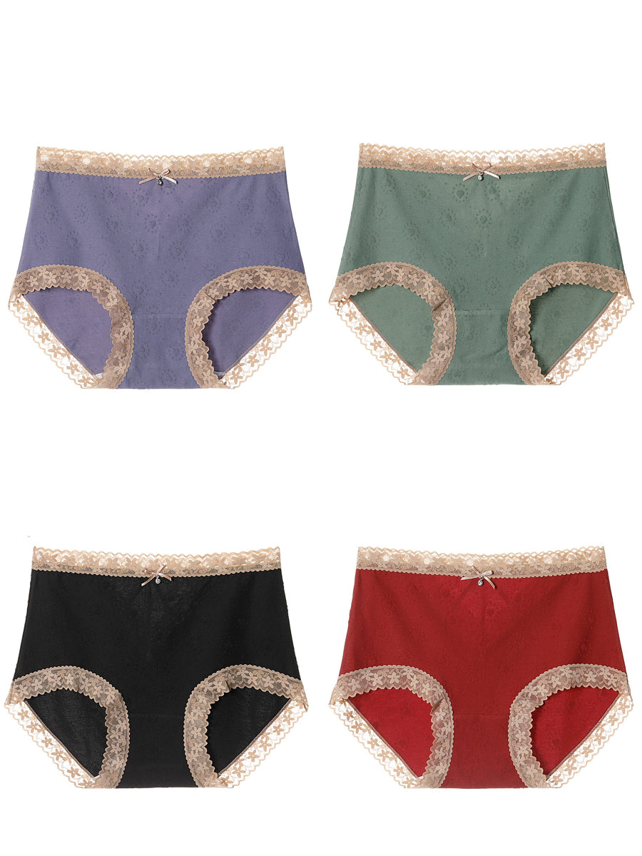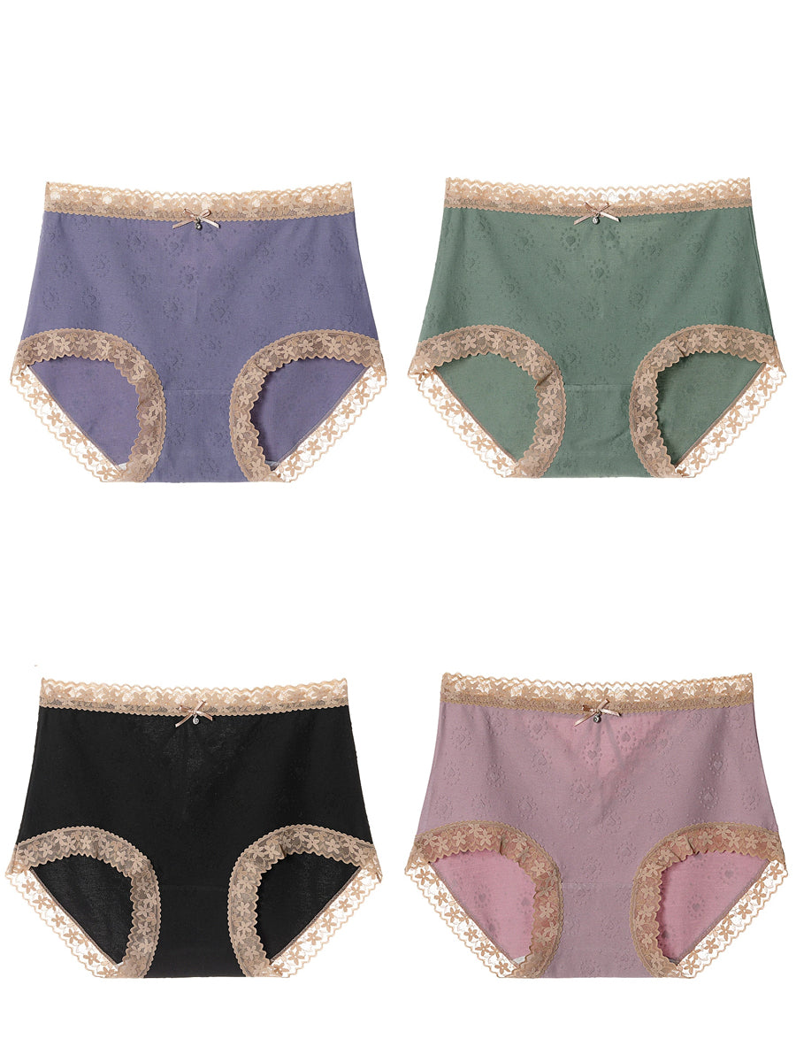 4 Pieces Women Artsy Lace Spliced High Waist Underwear