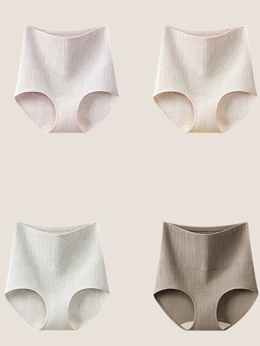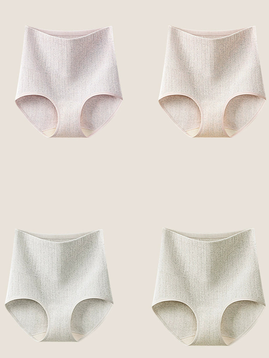 4 Pieces Women Artsy Pure Color High Waist Underwear