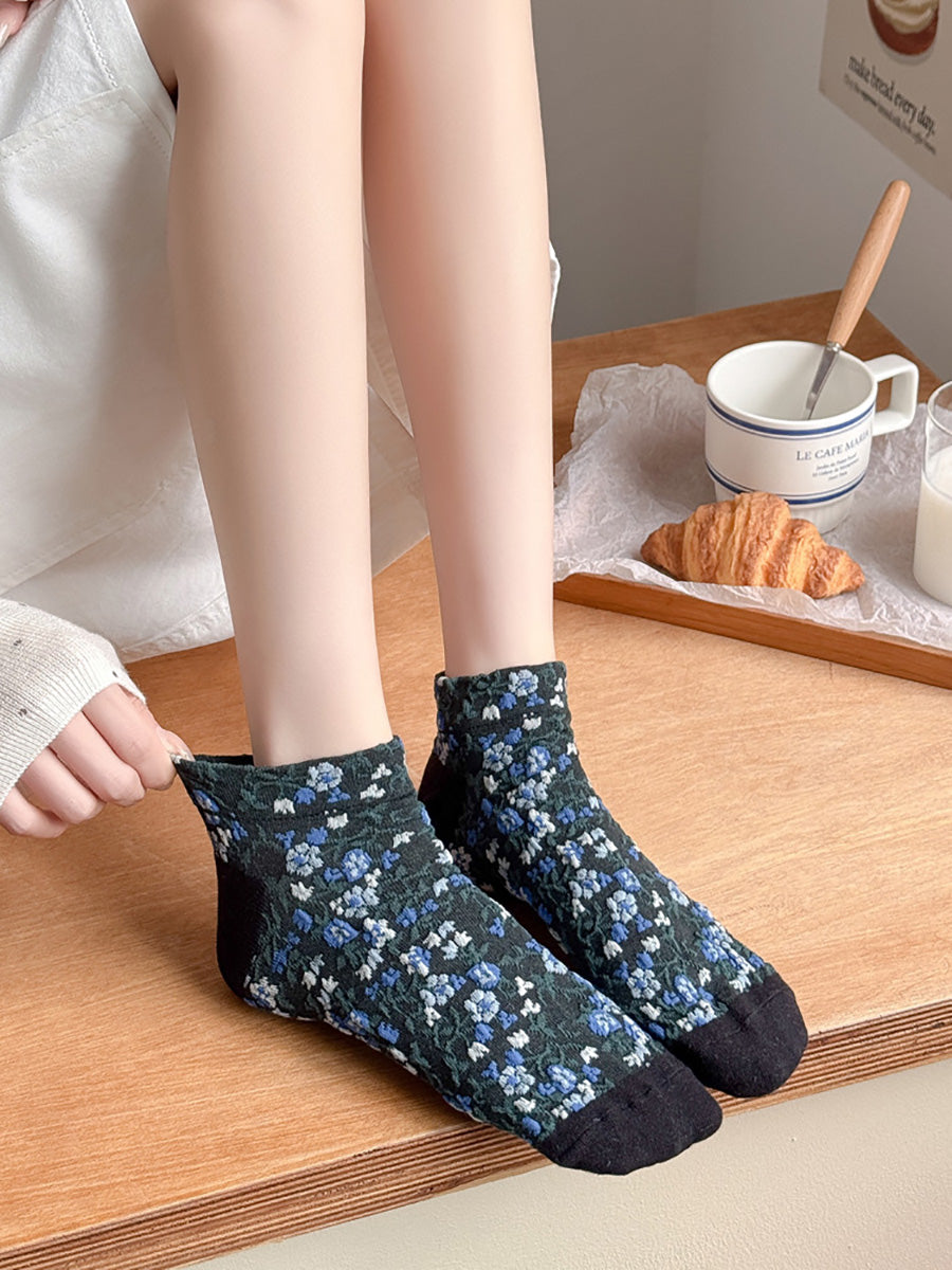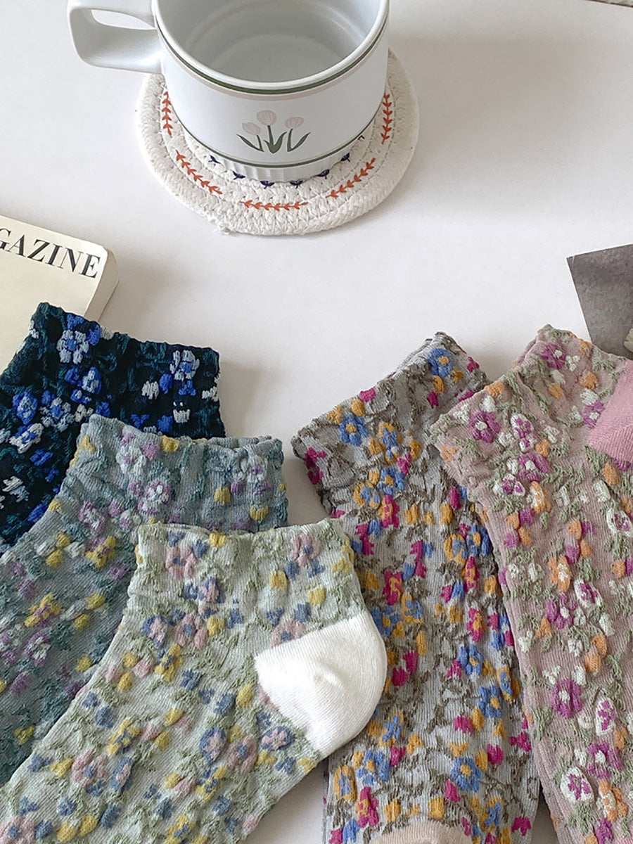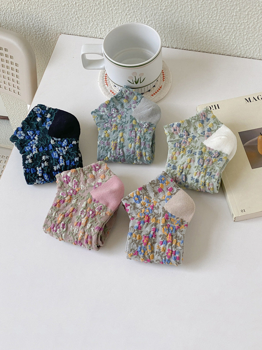 5 Pairs Women Artsy Floral Jacquard Colorblock Short Socks