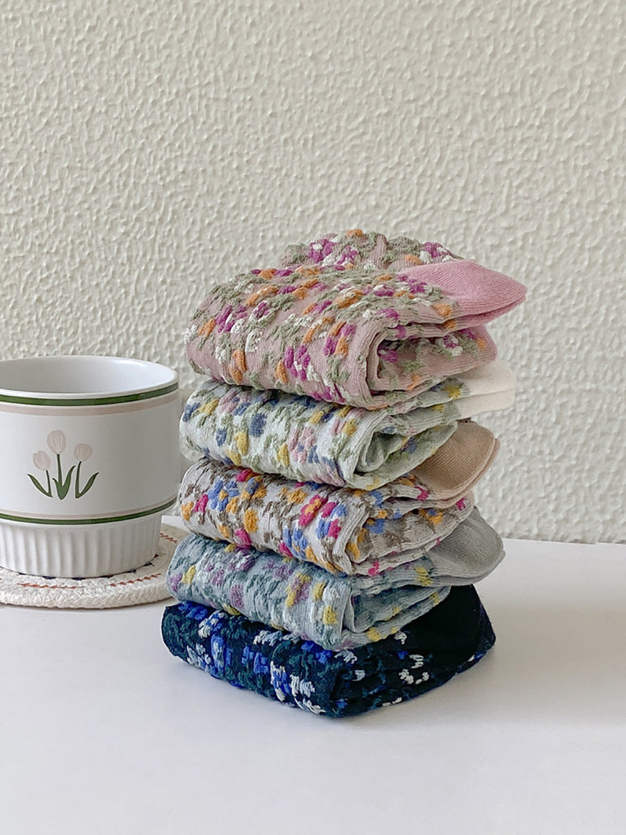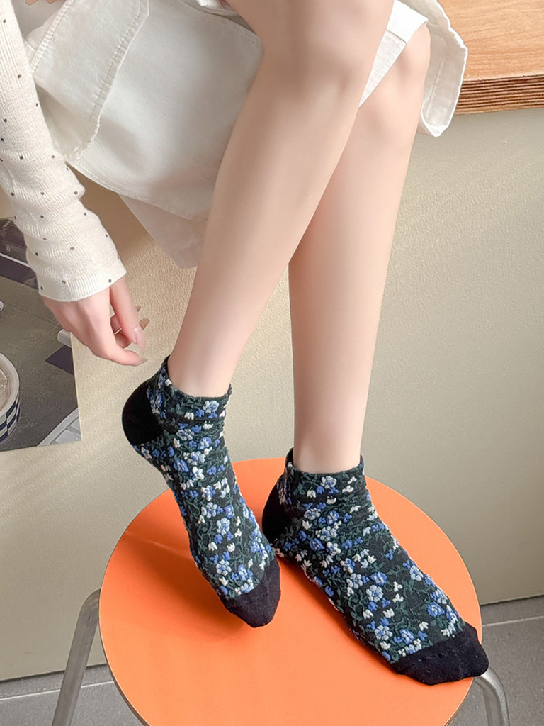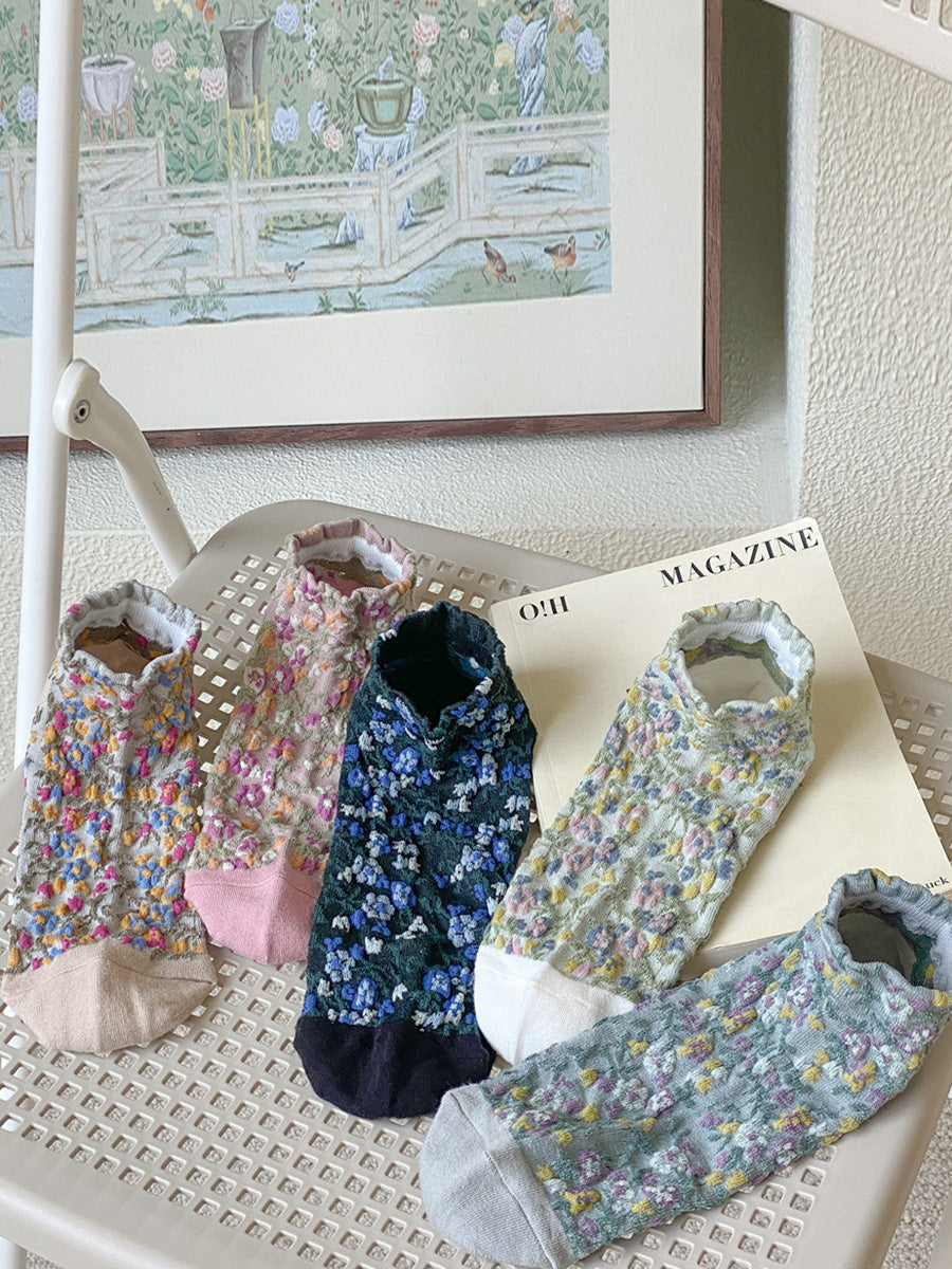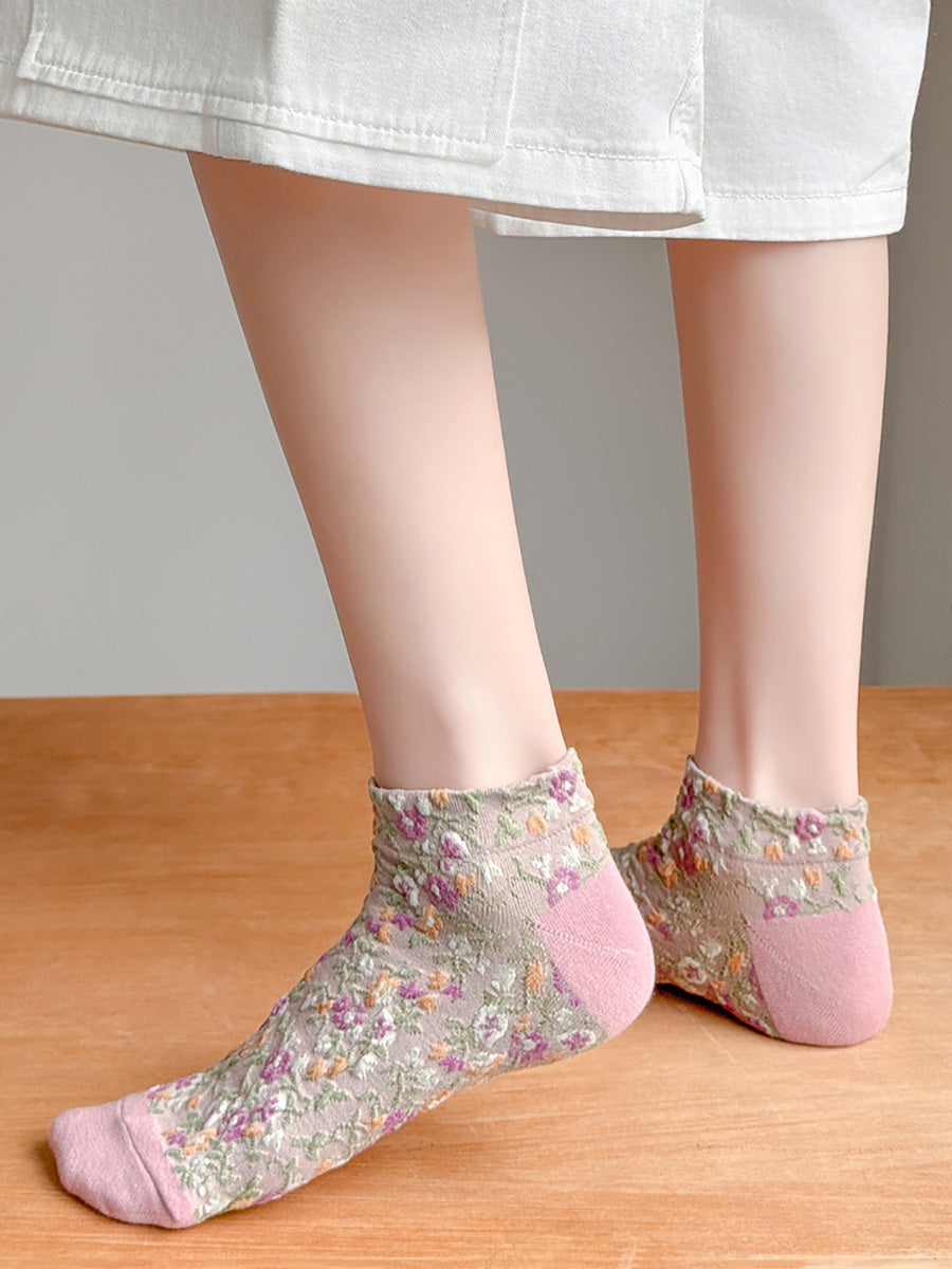 5 Pairs Women Artsy Floral Jacquard Colorblock Short Socks