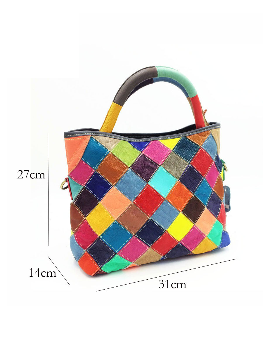 Casual Colored Grid Leather Handbag Crossbody Bag
