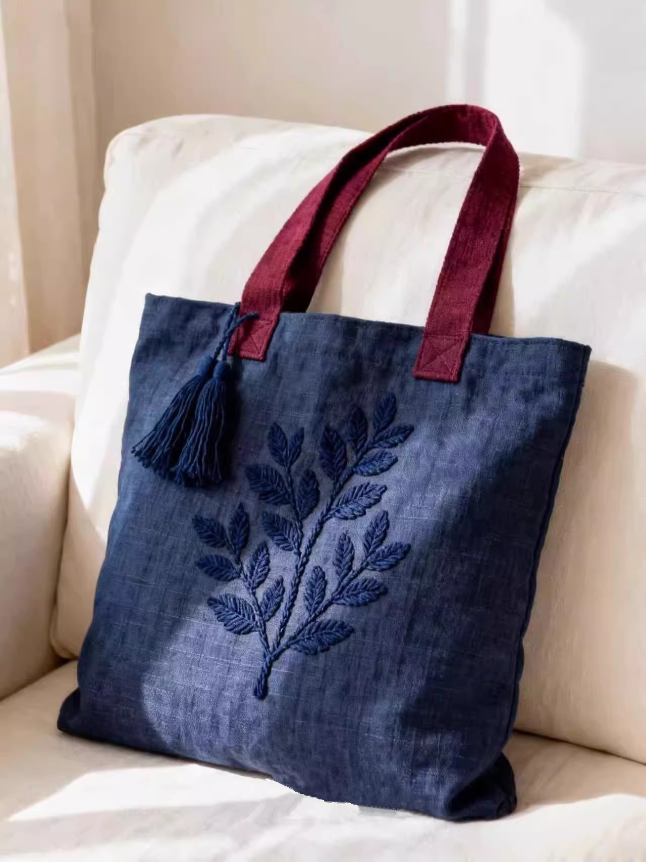 Retro Embroidered Plant Canvas Bag