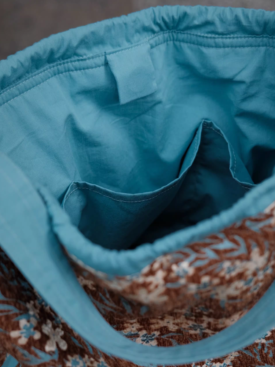 Vintage Floral Jacquard Chenille Drawstring Shoulder Bag
