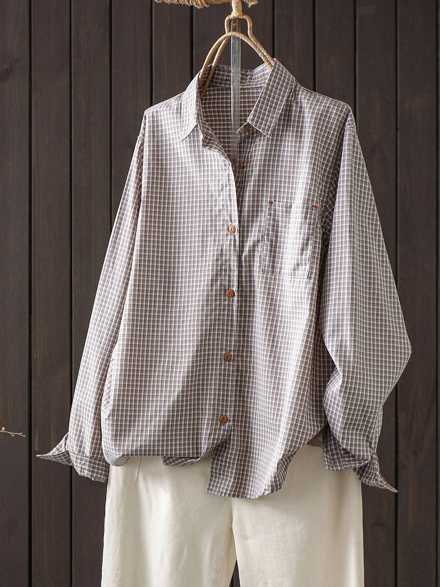 Women Artsy Spring Plaid 100%Cotton Shirt