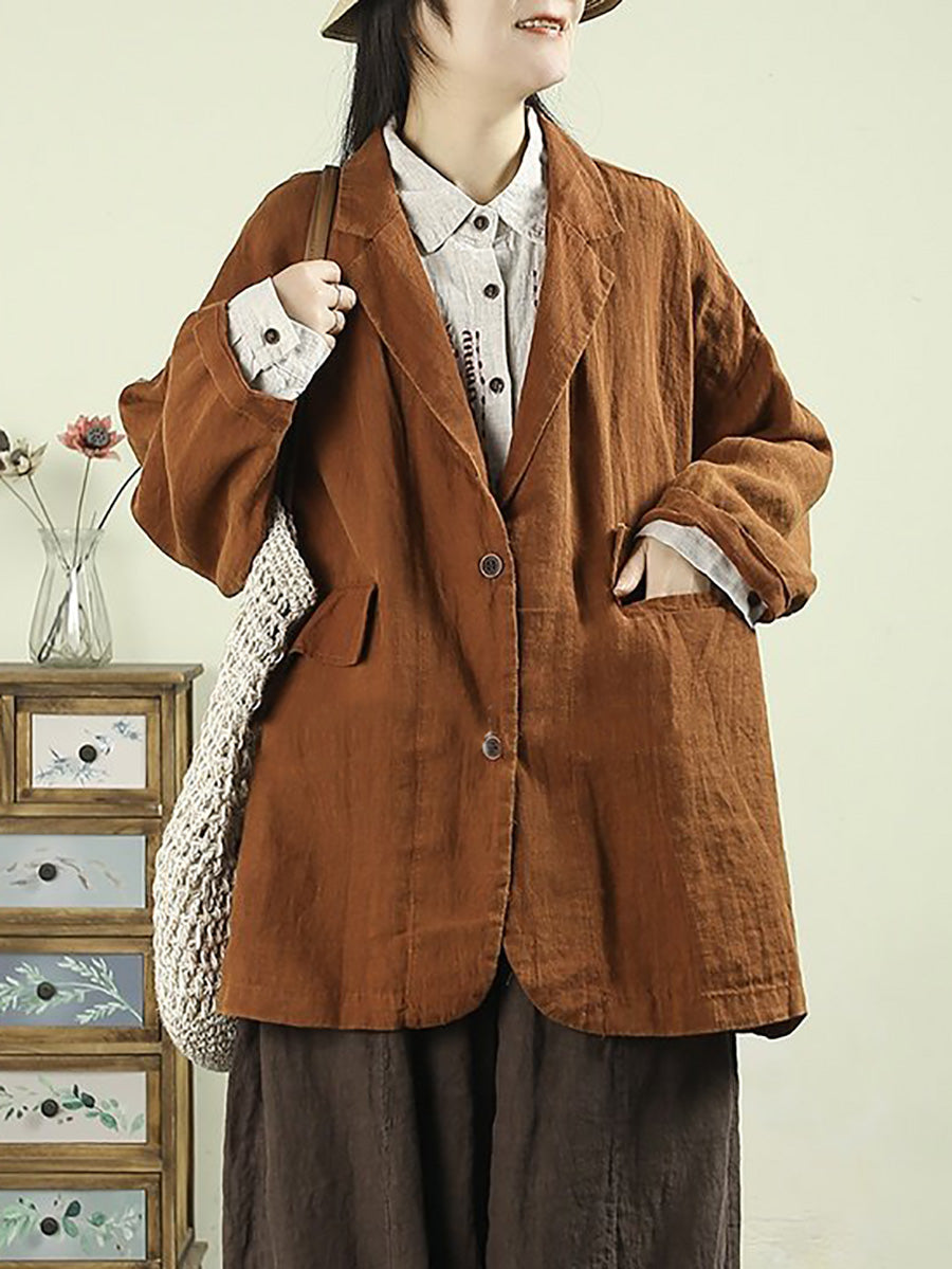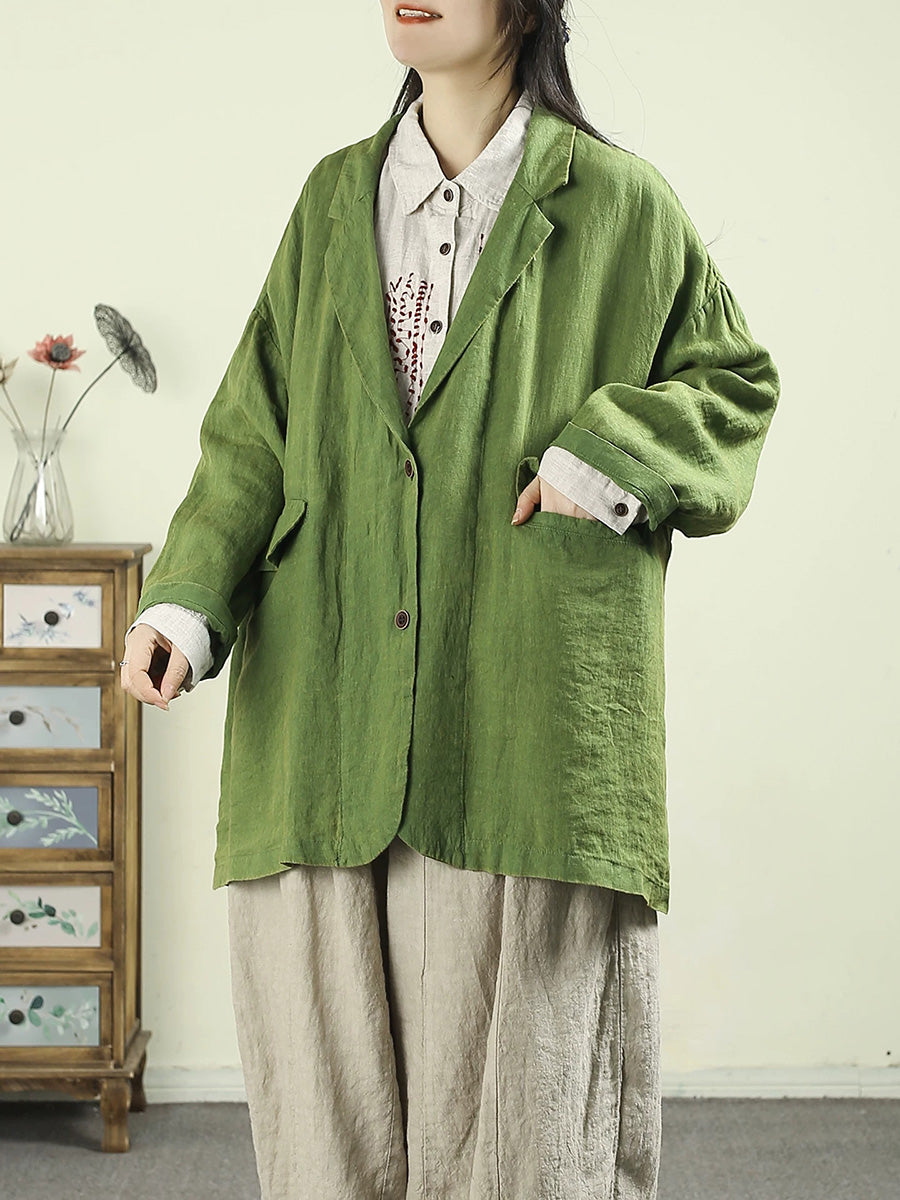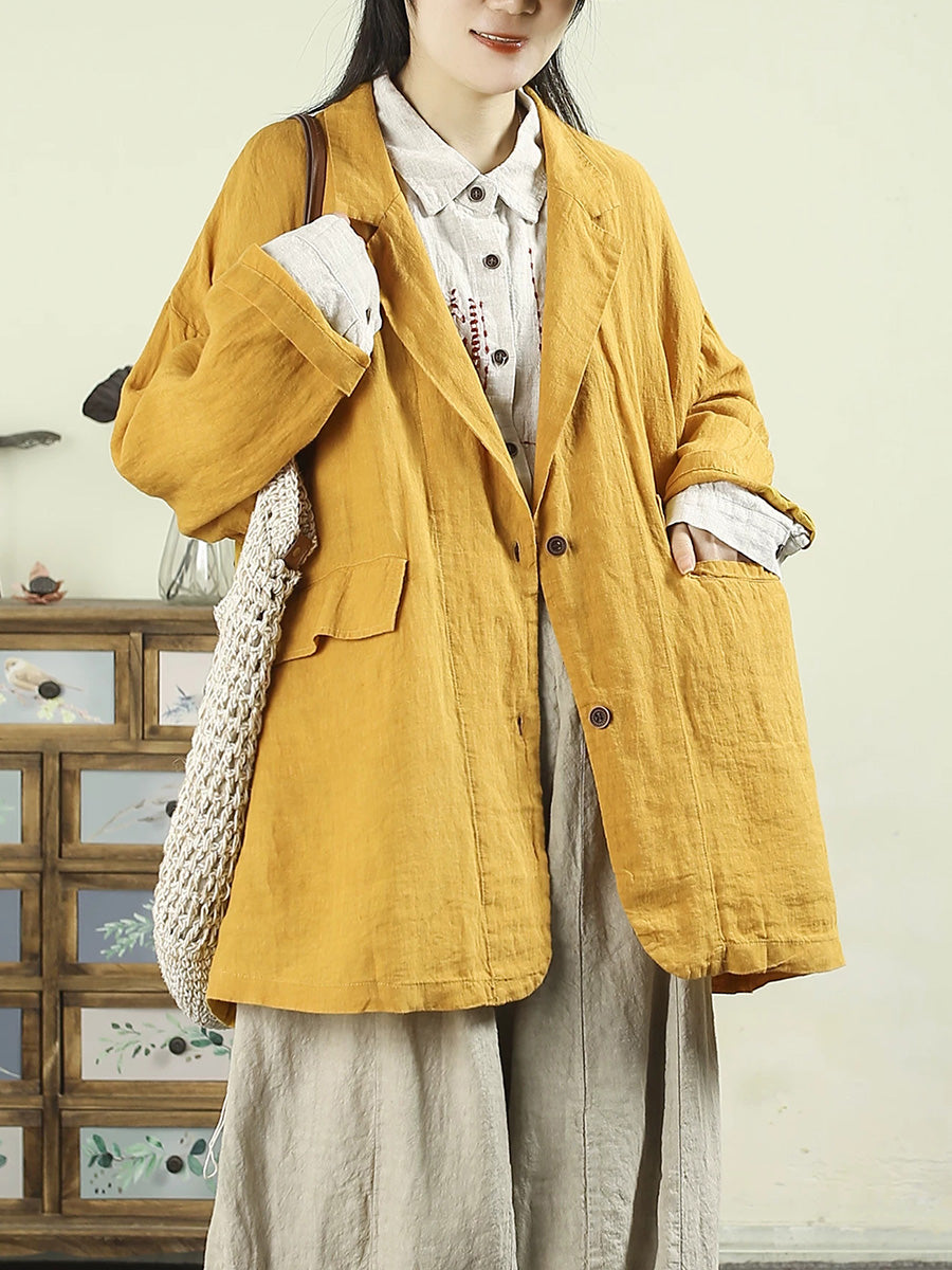 Women Artsy Spring Pure Color 100%Linen Coat