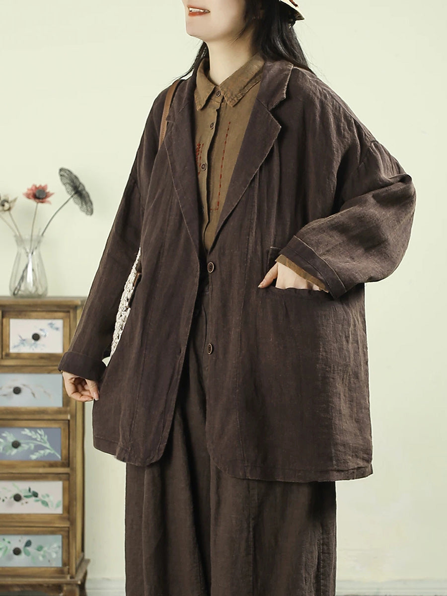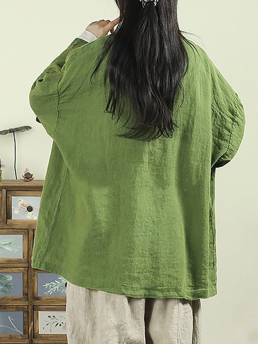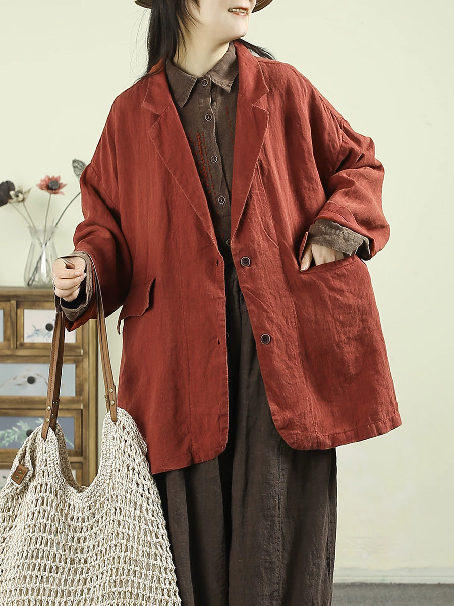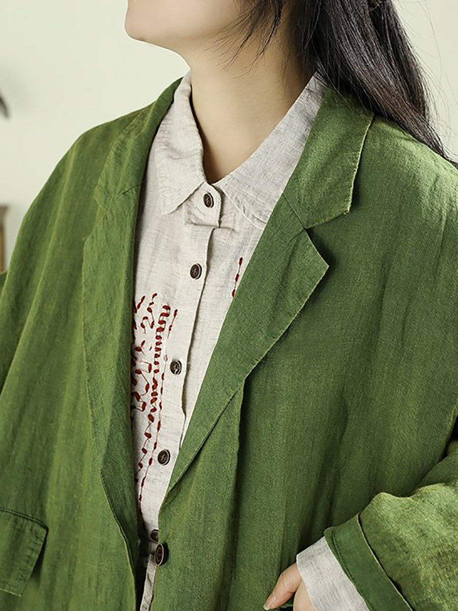 Women Artsy Spring Pure Color 100%Linen Coat