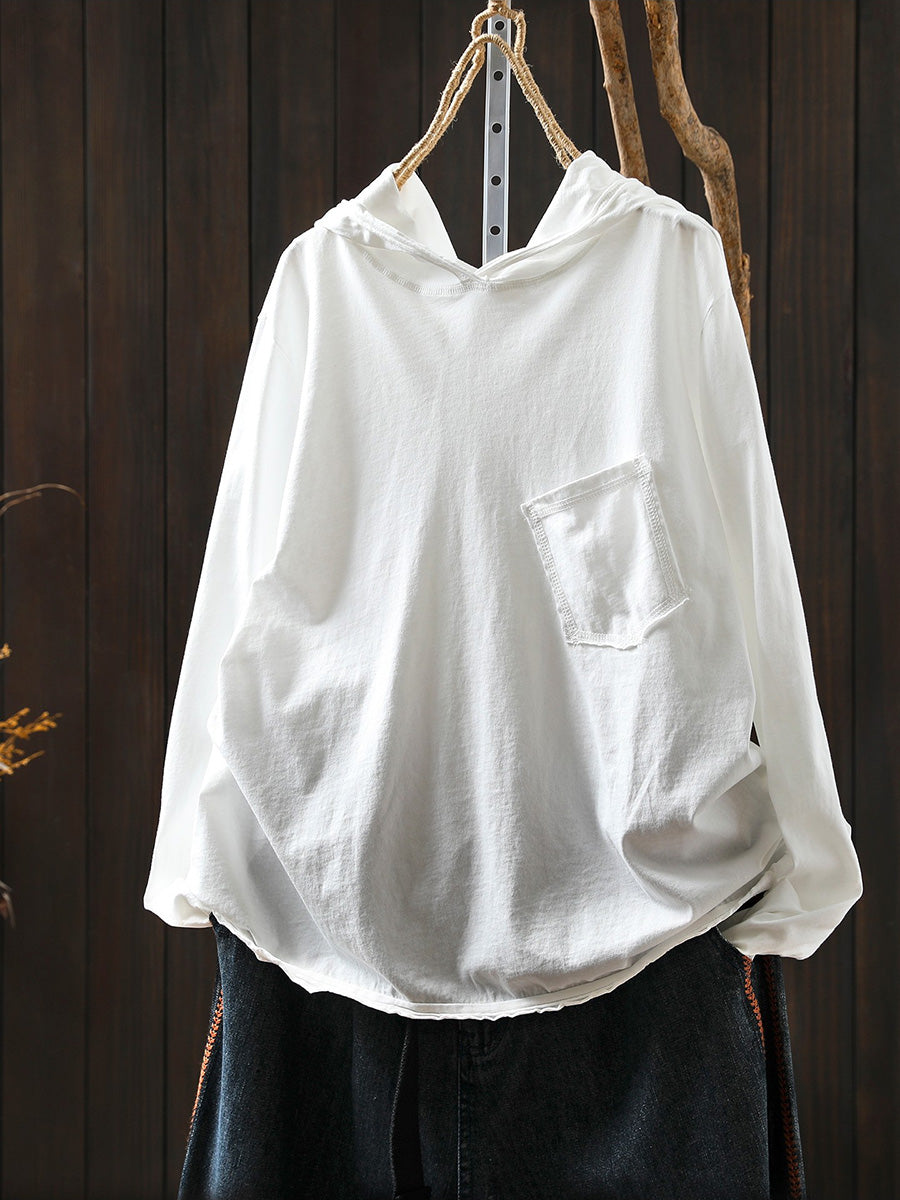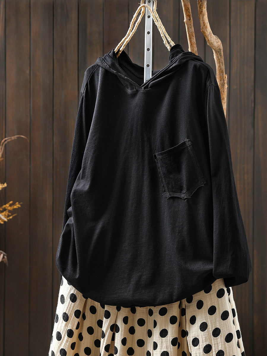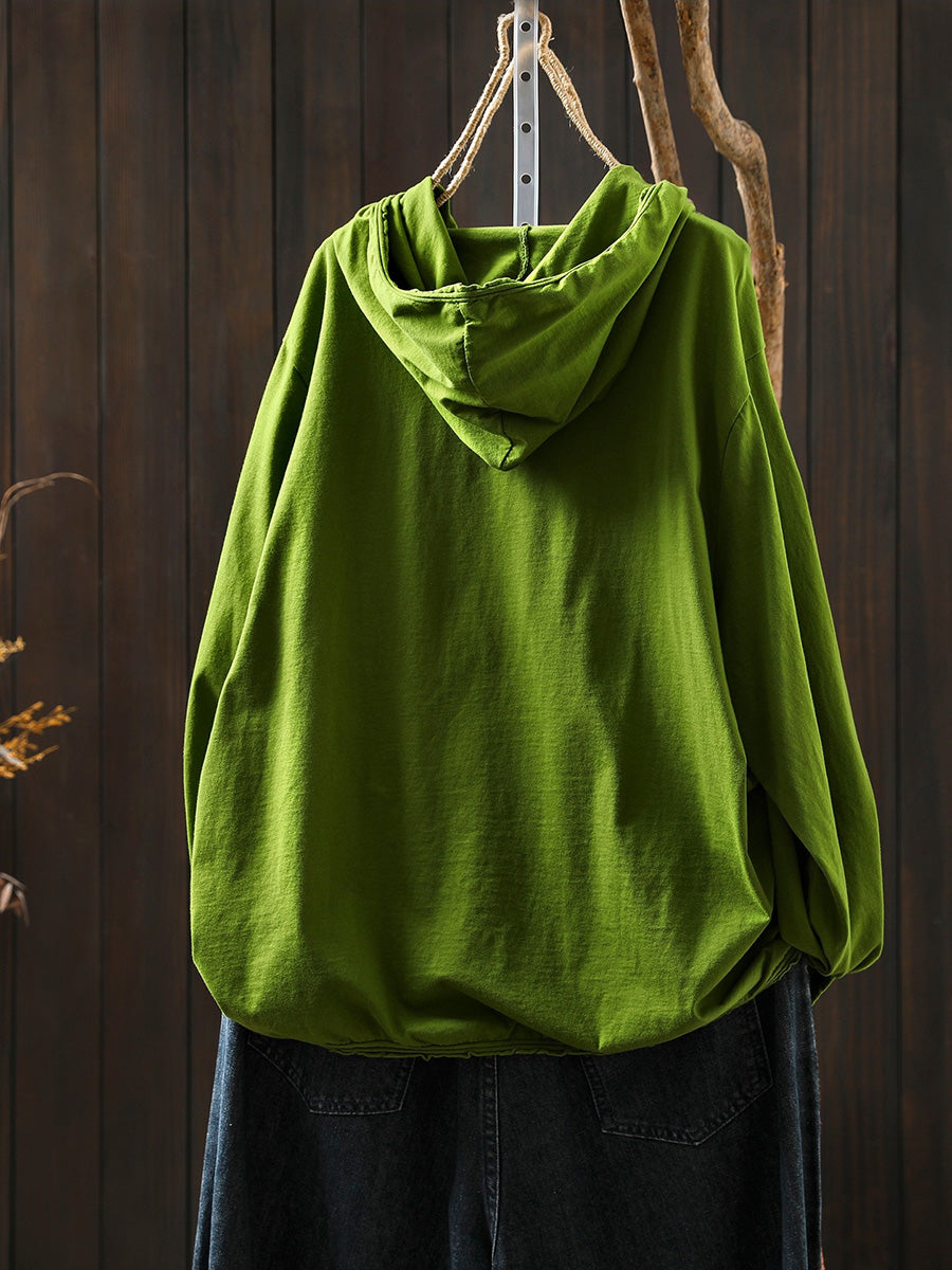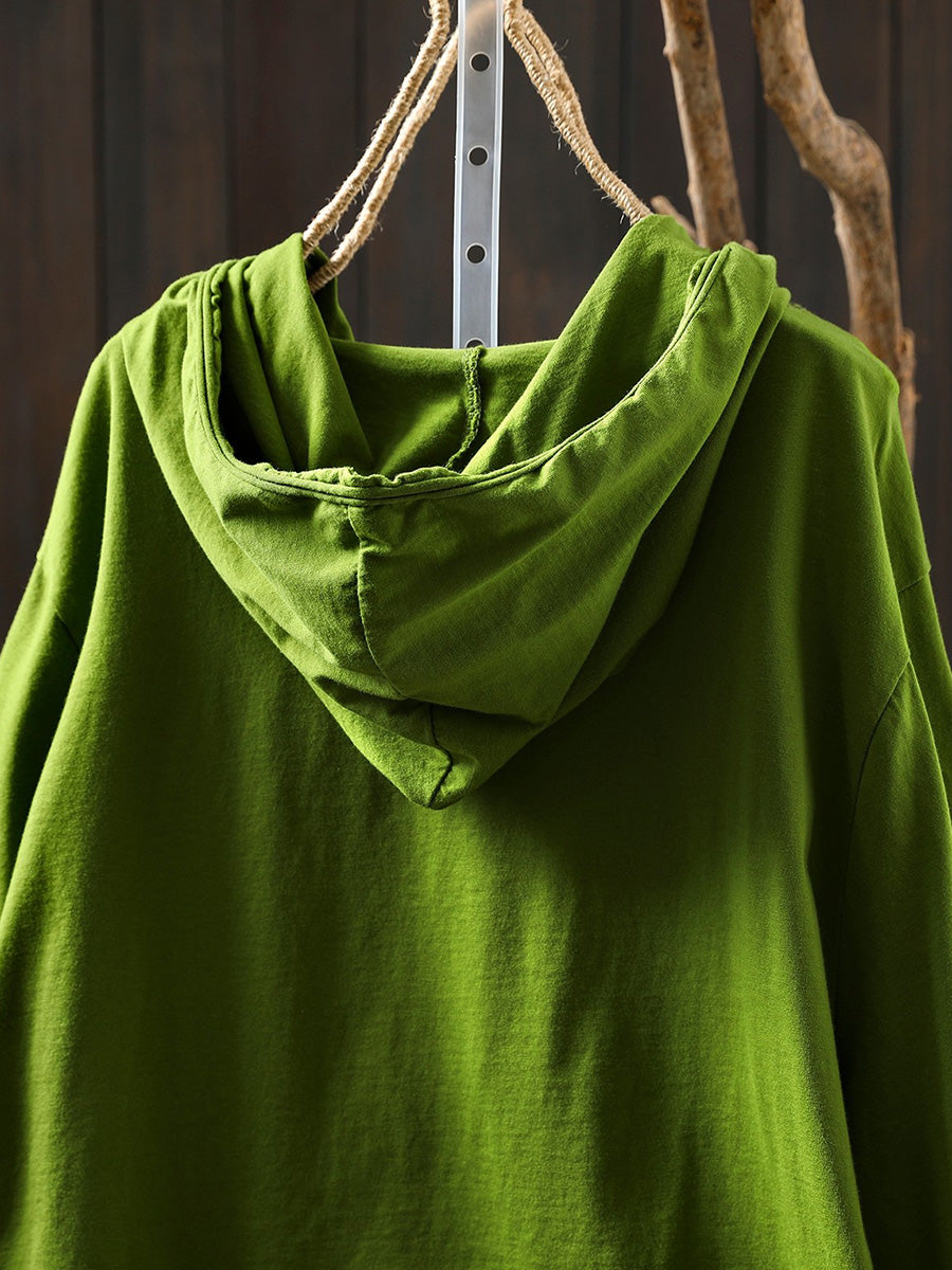 Women Artsy Spring Pure Color Cotton Hoodie