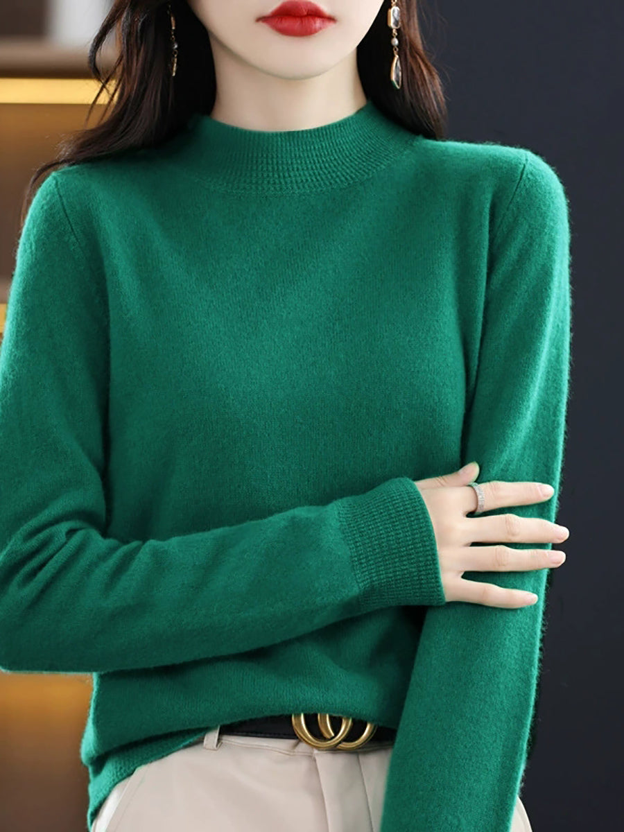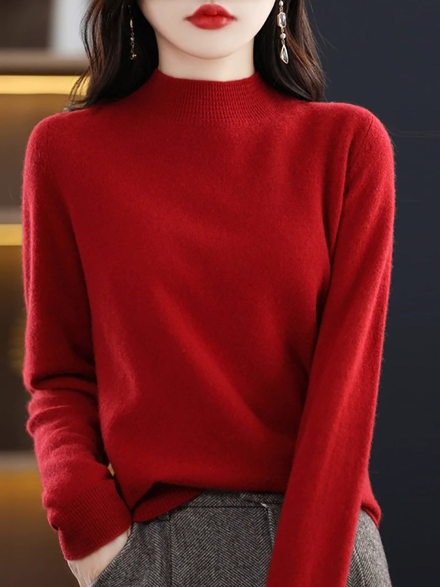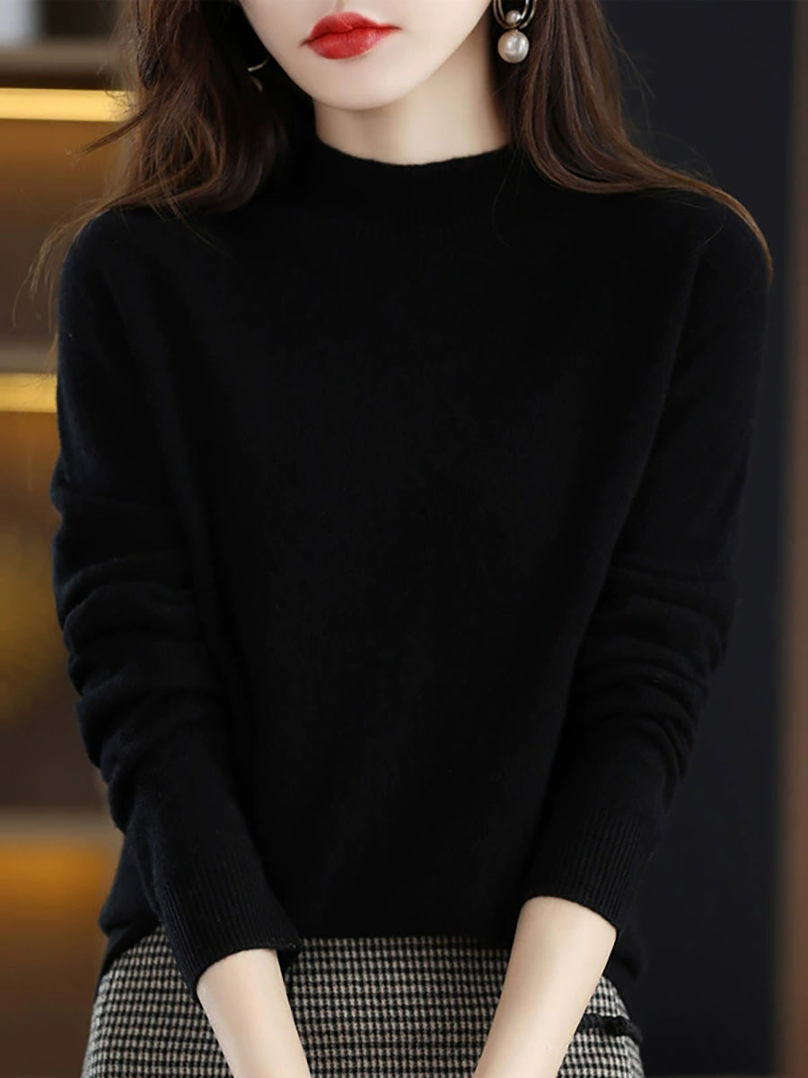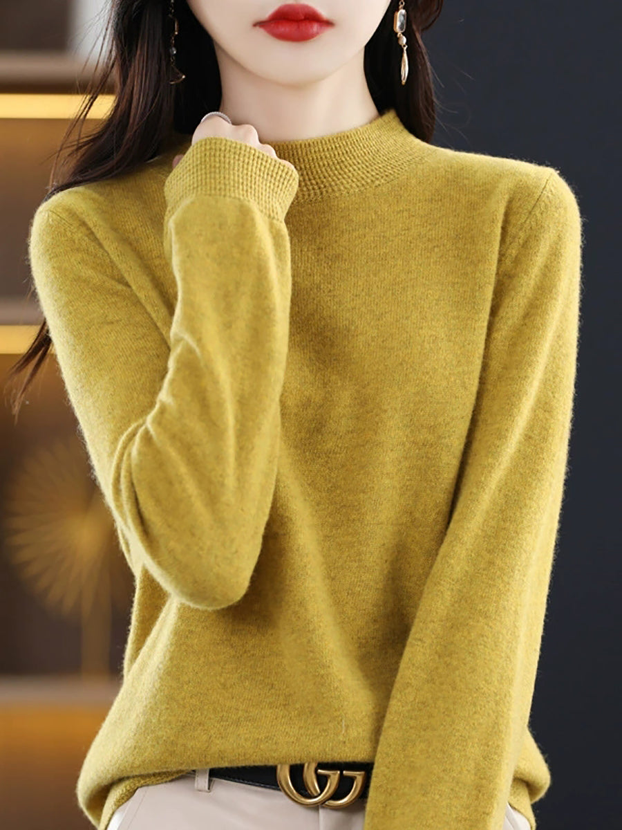 Women Artsy Spring Pure Color Half-Turtleneck Sweater