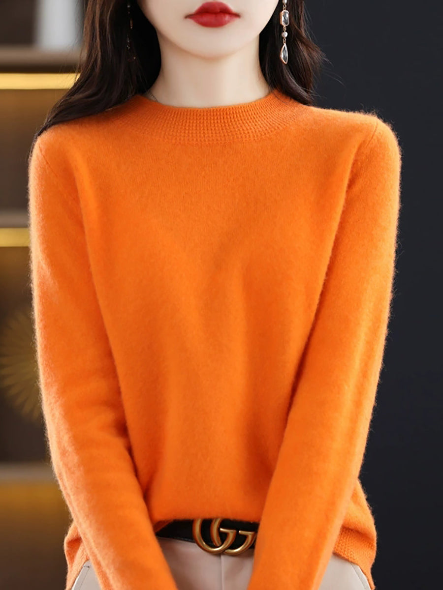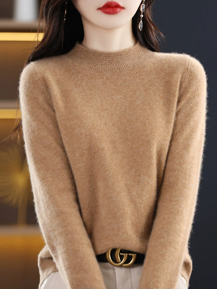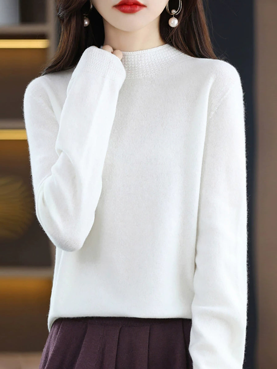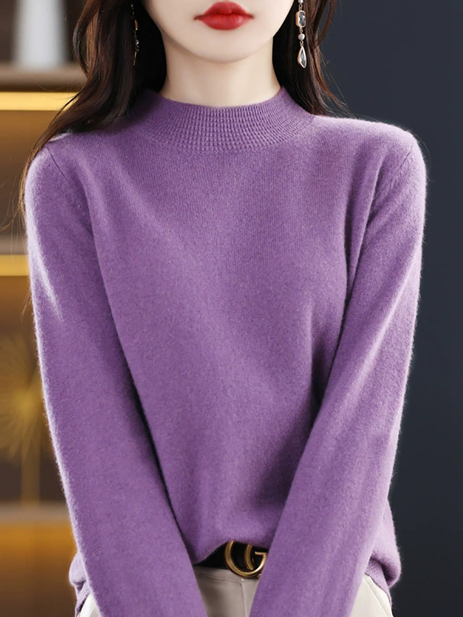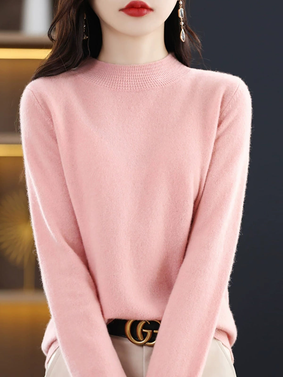 Women Artsy Spring Pure Color Half-Turtleneck Sweater