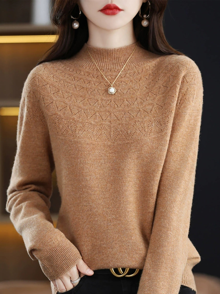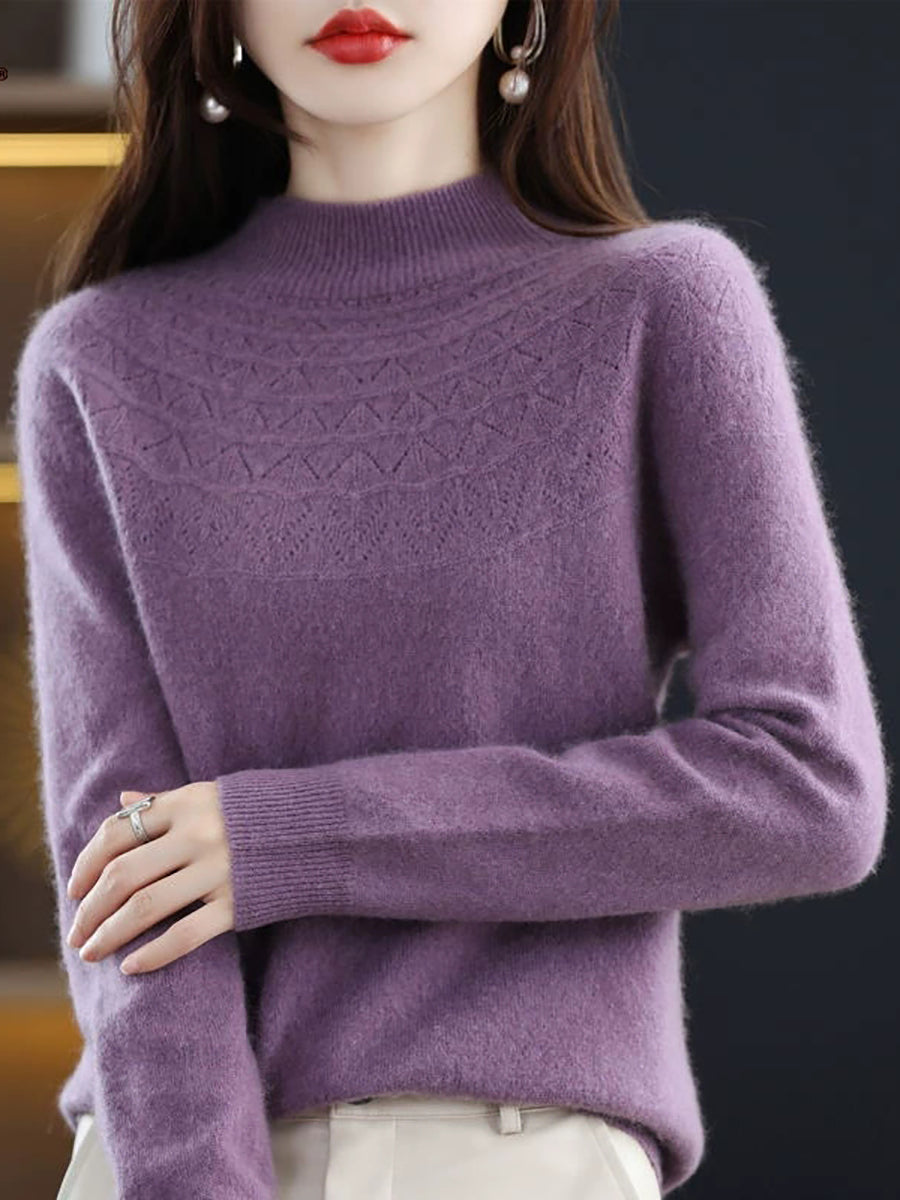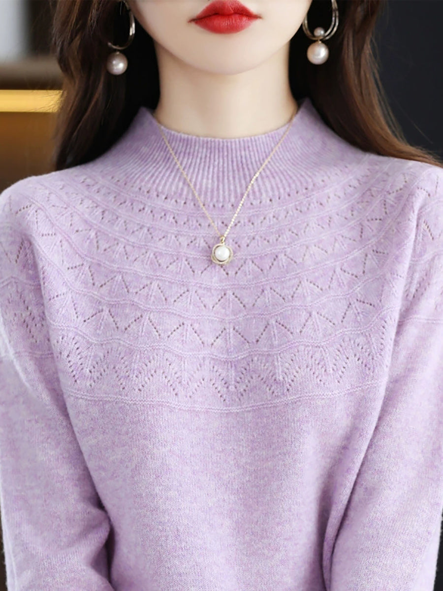 Women Artsy Spring Pure Color Half-Turtleneck Sweater