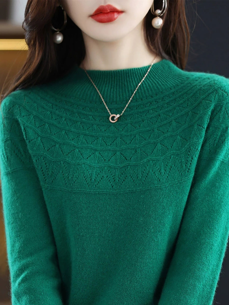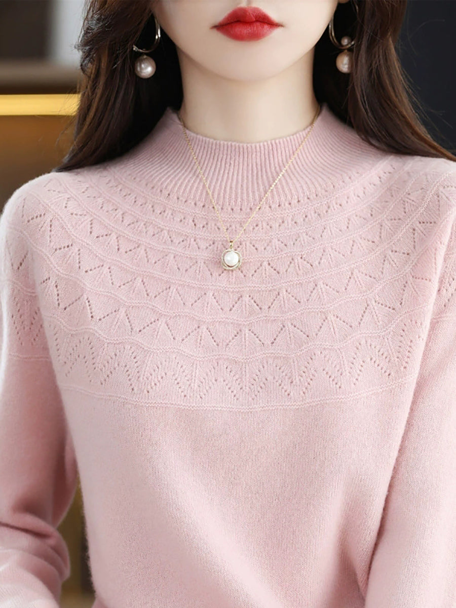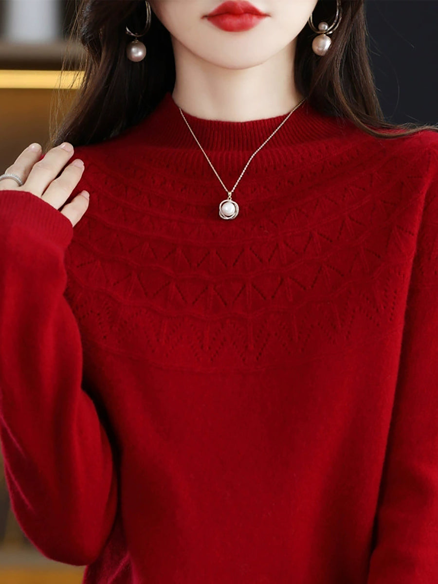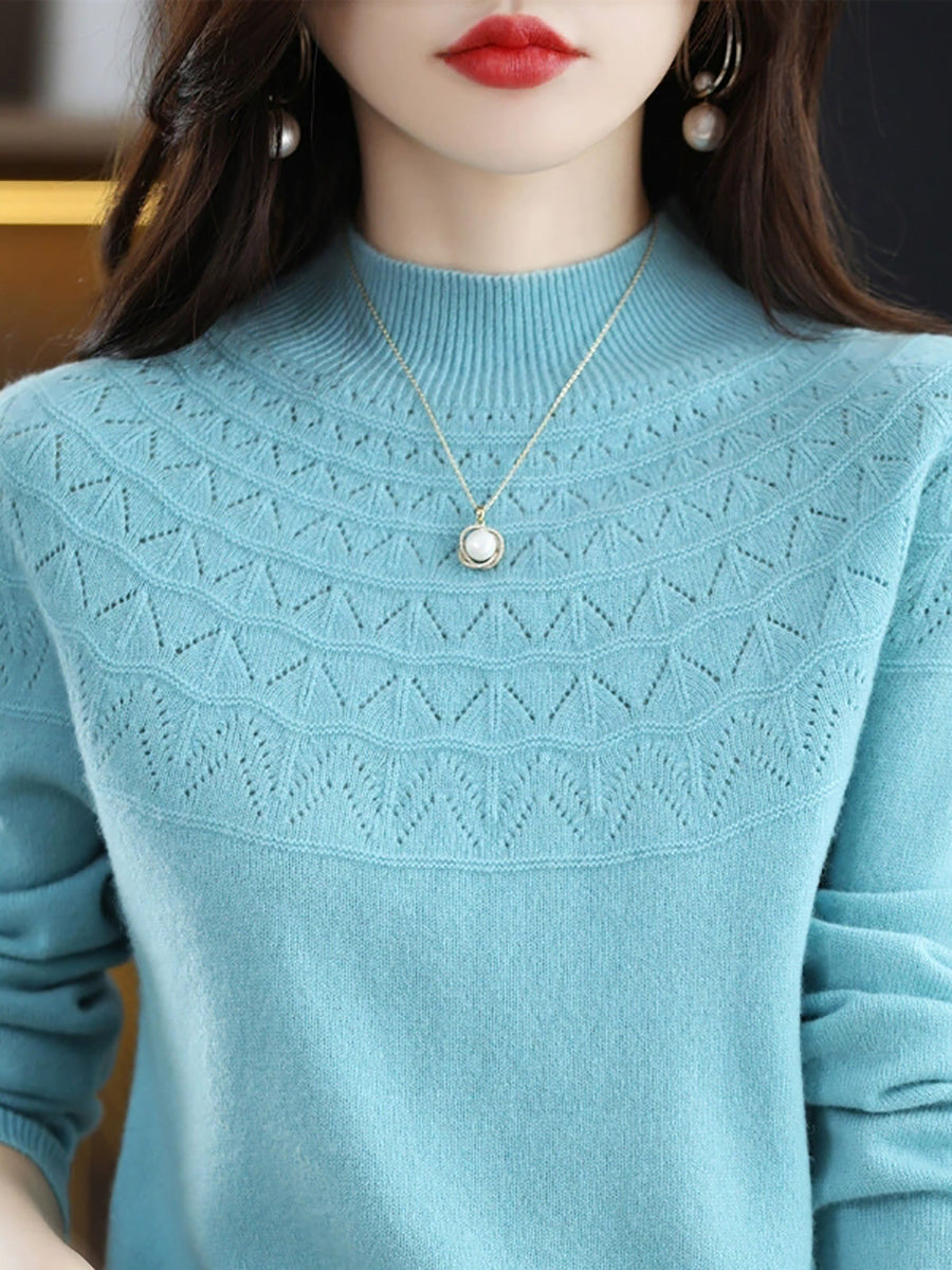 Women Artsy Spring Pure Color Half-Turtleneck Sweater