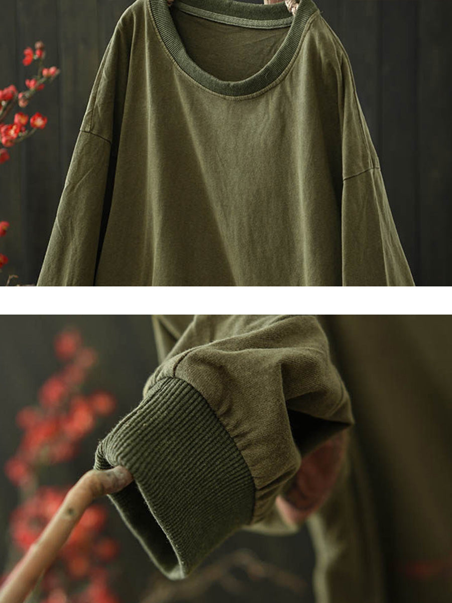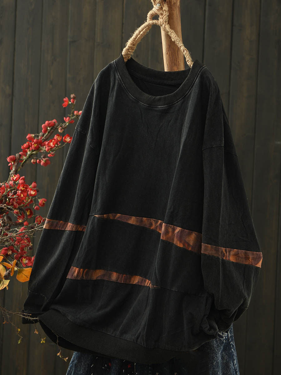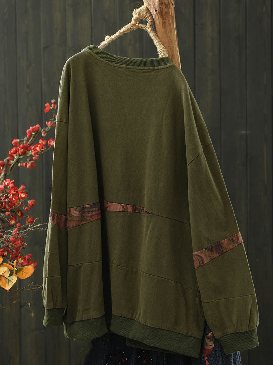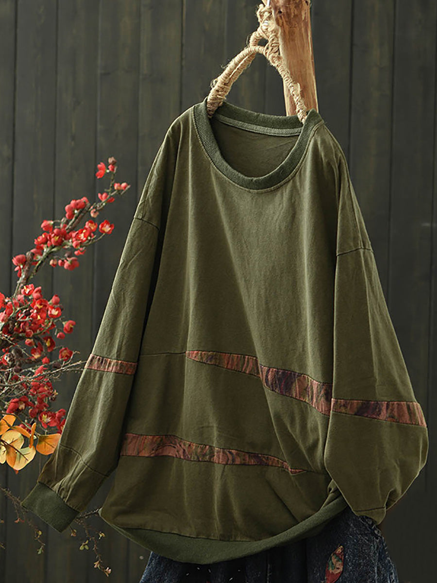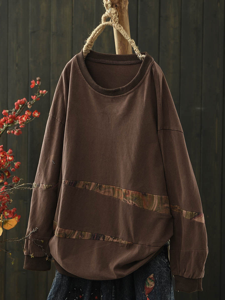 Women Vintage Spring Spliced Cotton O-Neck Blouse