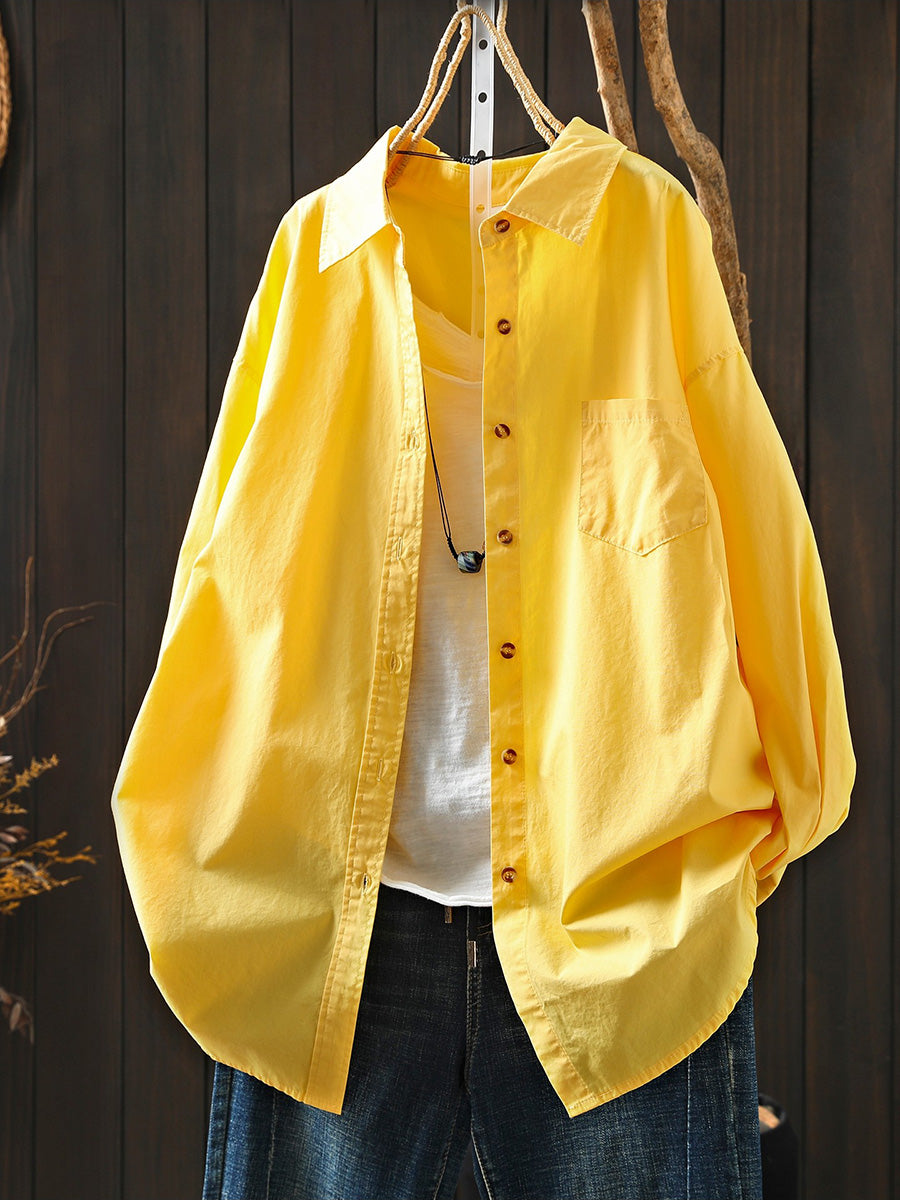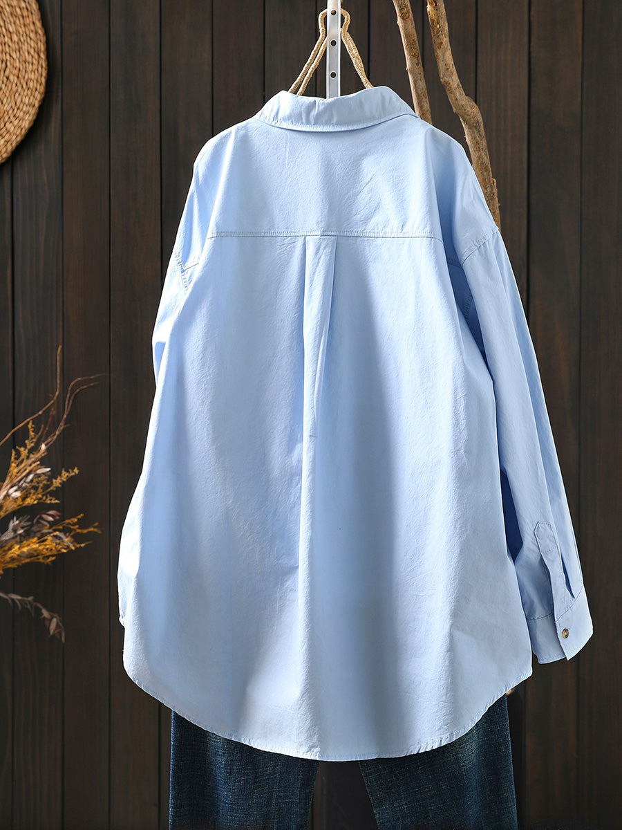 Women Artsy Spring Turn-down Collar 100%Cotton Shirt
